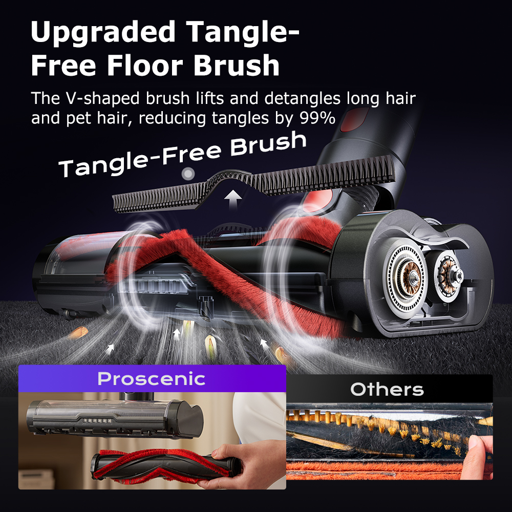 • V-muotoinen lattiasuulake: parannettu V-ohjausharjas kokoaa hiukset takertumatta, vähentää huoltotarvetta ja tekee hiusten imuroinnista helppoa. Erinomainen valinta lemmikkiperheille.