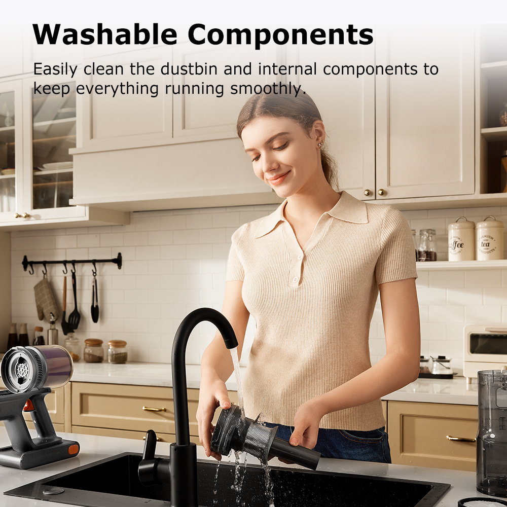 • Tehokas imuteho useille pinnoille: jopa 50Kpa/550W -teho irrottaa pölyn, roskat ja lemmikkikarvat kovilta lattioilta, matoilta ja muilta pinnoilta. Muuntuu nopeasti käsikäyttöiseksi imuriksi, sisäänrakennettu pyöröharja ja rakotyökalu helpottavat siivousta kotona ja autossa.