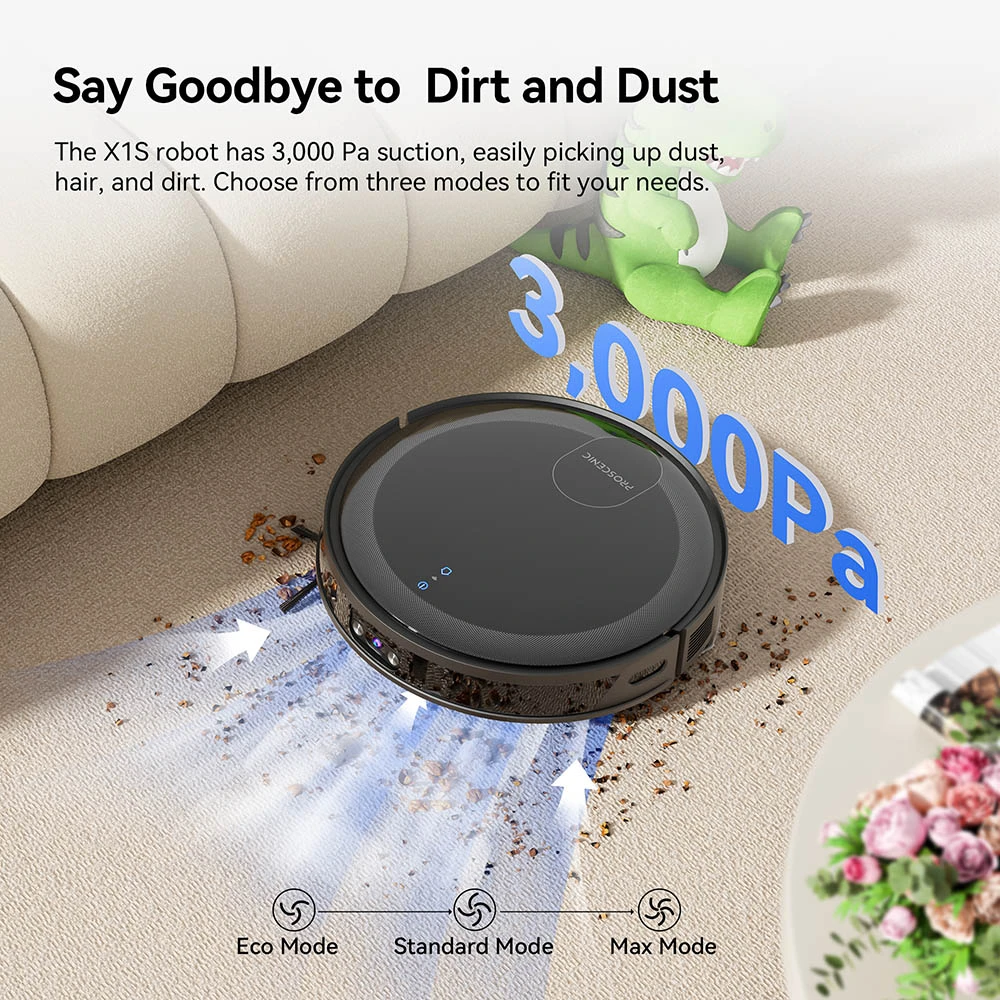 Proscenic X1S robotti-imuri värinämopilla 3000 Pa:n imuteholla 2,5 l pölypussilla sovellus ja ääniohjaus
