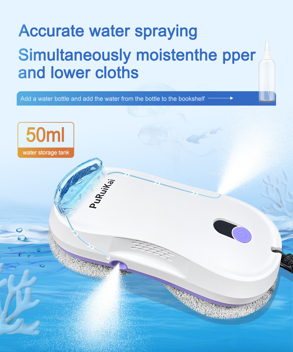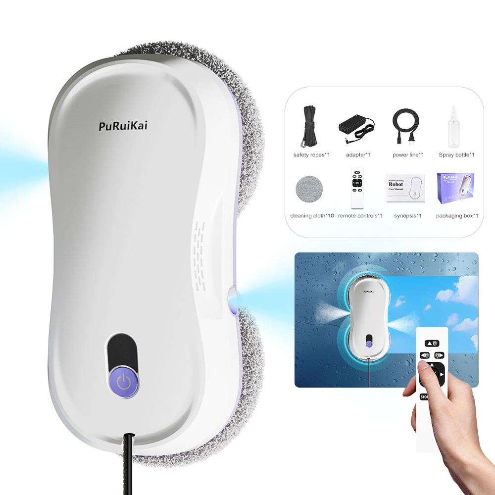 PuRuiKai ikkunanpesurobotti kaksoissuuttimella kaukosäätimellä akkukäyttöinen 5600 Pa:n imuteho