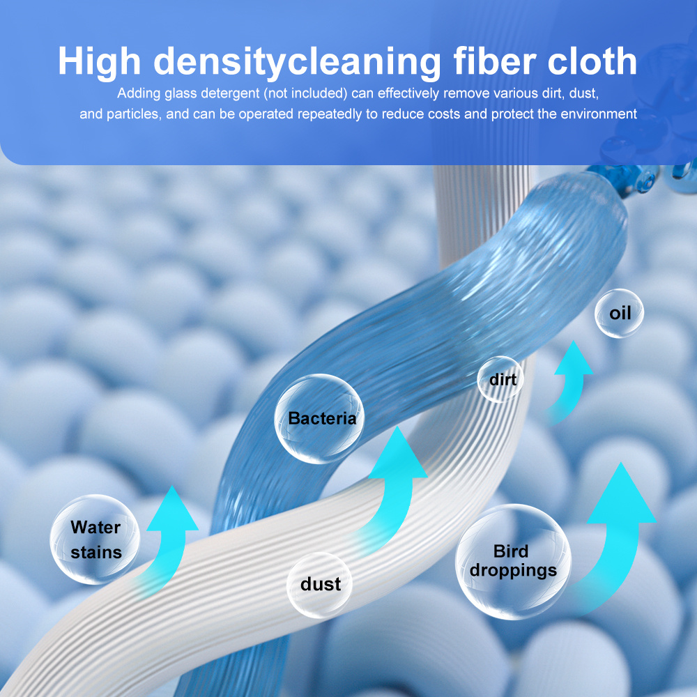 4. 【Tehokas puhdistus】Moottorin imu yhdistettynä mikrokuituliinaan, joka peittää koko puhdistuspinnan pyörimisen aikana, pyyhkii pölyn naarmuttamatta lasia. Tahrat eivät leviä, ja pinnasta tulee puhtaampi. Mukana 10 mikrokuitupäällystettä (5 paria), konepestäviä ja vaihdettavia.