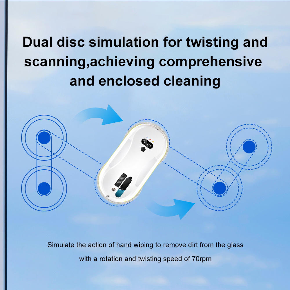 ABIR WD8 ikkunapuhdistusrobotti tehokas 3000Pa imuteho kaksi ultraäänisuihkua sovellus kaukosäädin