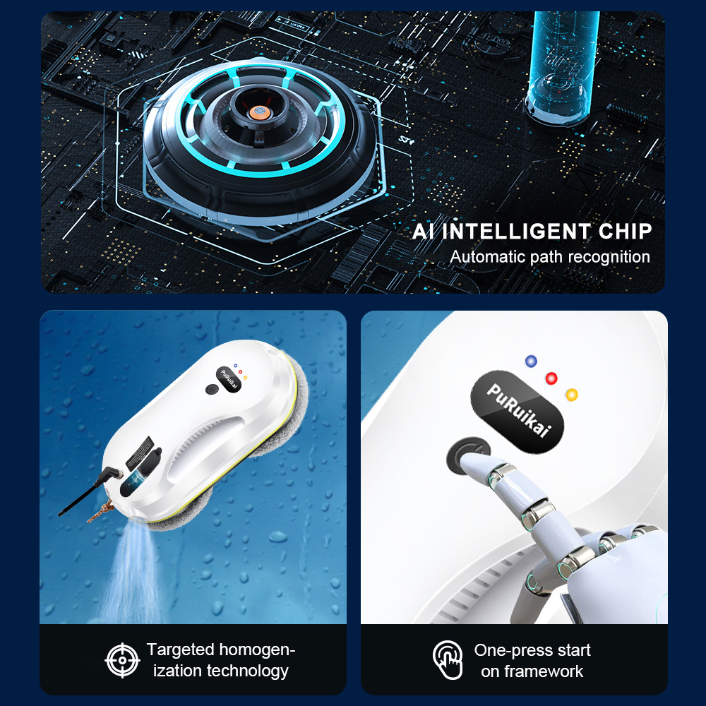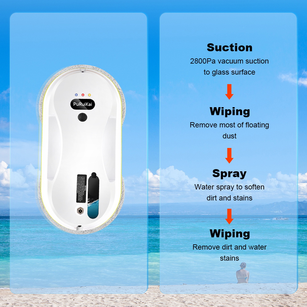PuRuiKai robotti-ikkunanpesuri 2800Pa imuteho automaattinen vesisuihku kaukosäädin harjaton moottori turvajohto
