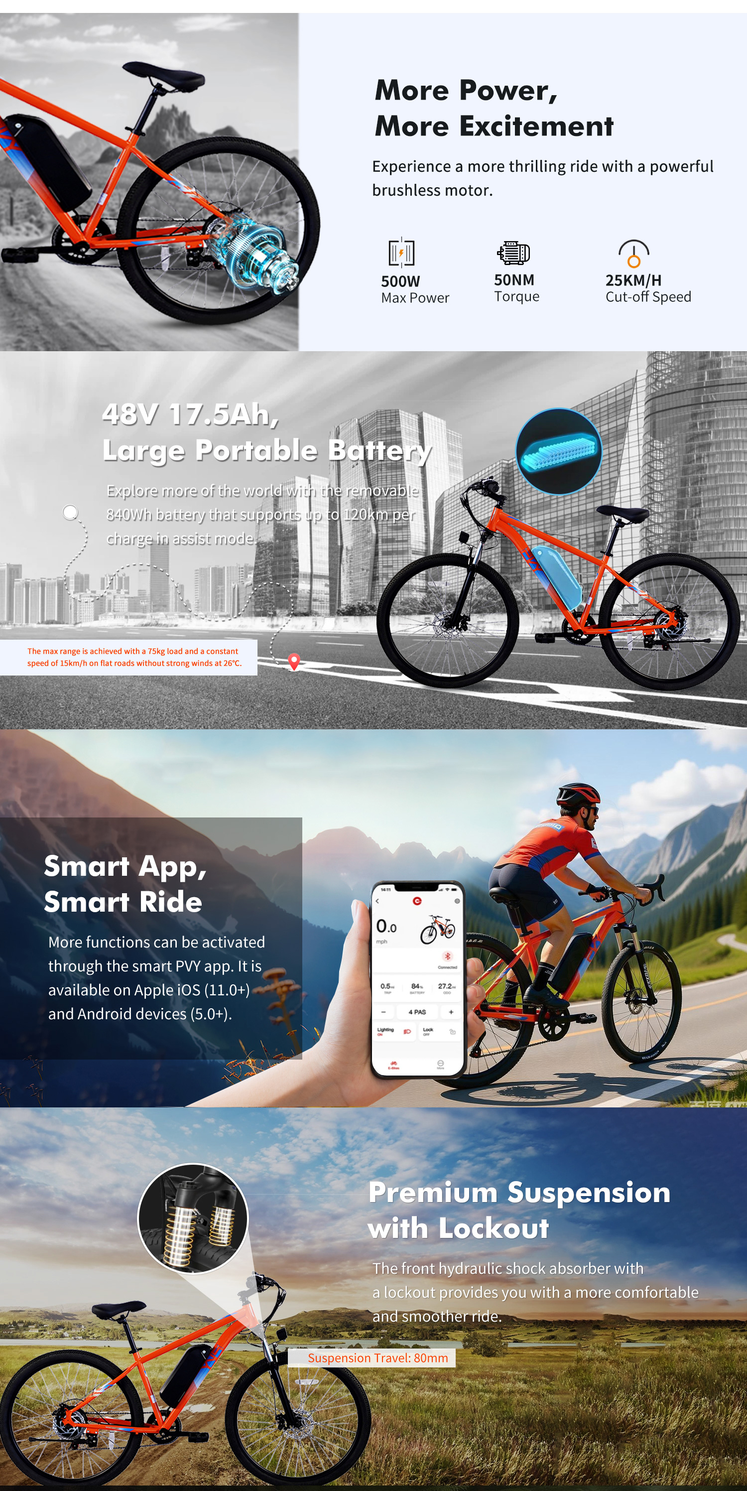 - 48V 17.5AH irrotettava akku jopa 120KM PAS-toimintamatkalla