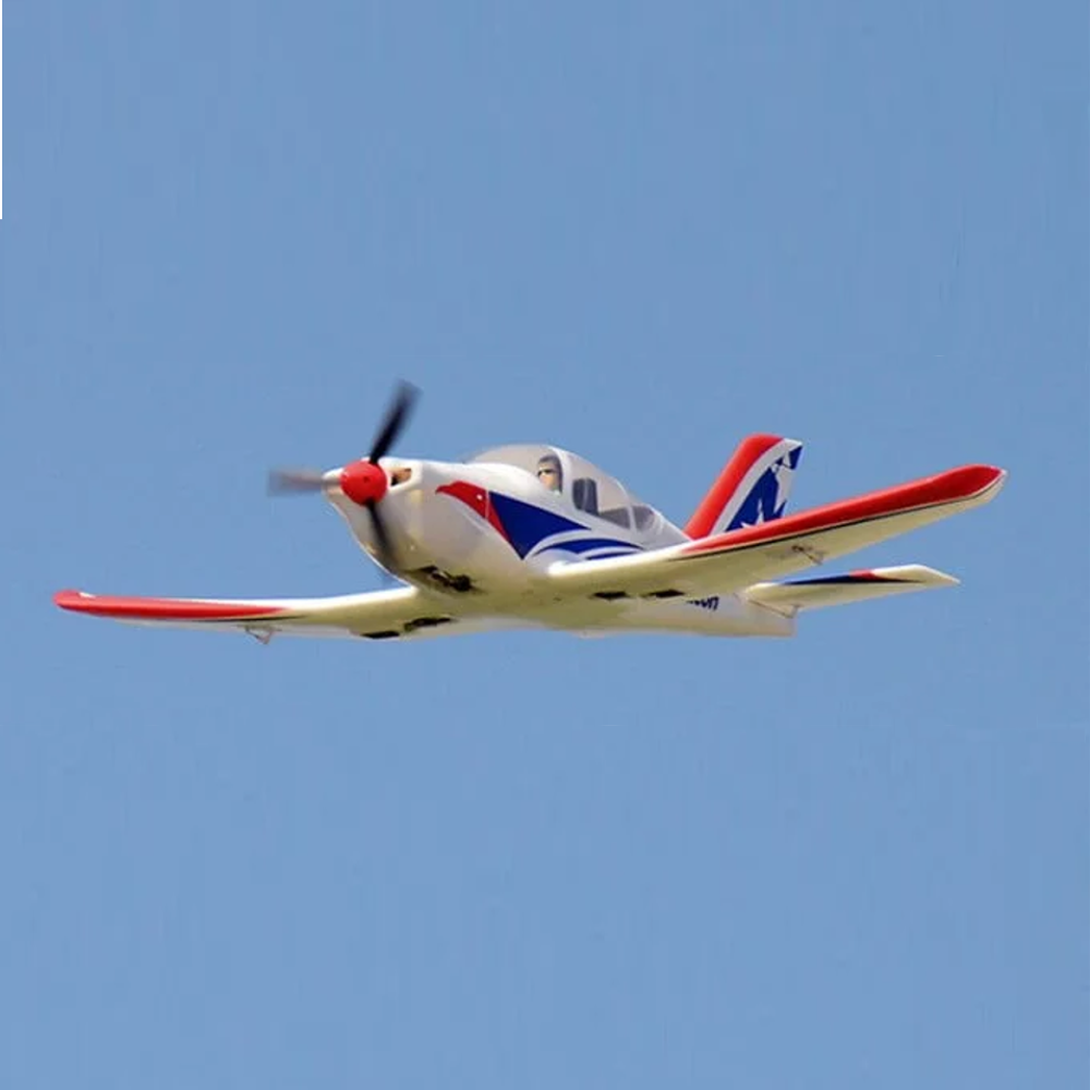 - Värikäs sininen ja punainen väritys sekä mittakaavapilotti antavat lennokille realistisen ulkonäön ja hyvän näkyvyyden ilmassa.