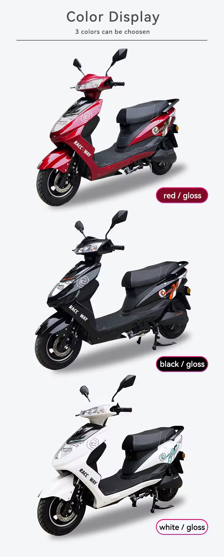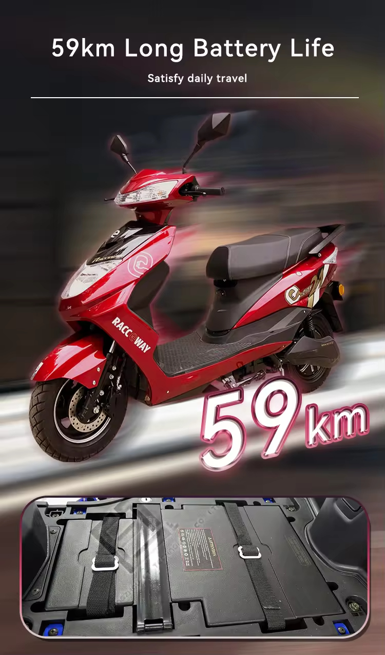 RACCEWAY MOTOE-03 sähkömopo 1500W moottori 72V 20Ah akku 59 km toimintamatka 25 km/h