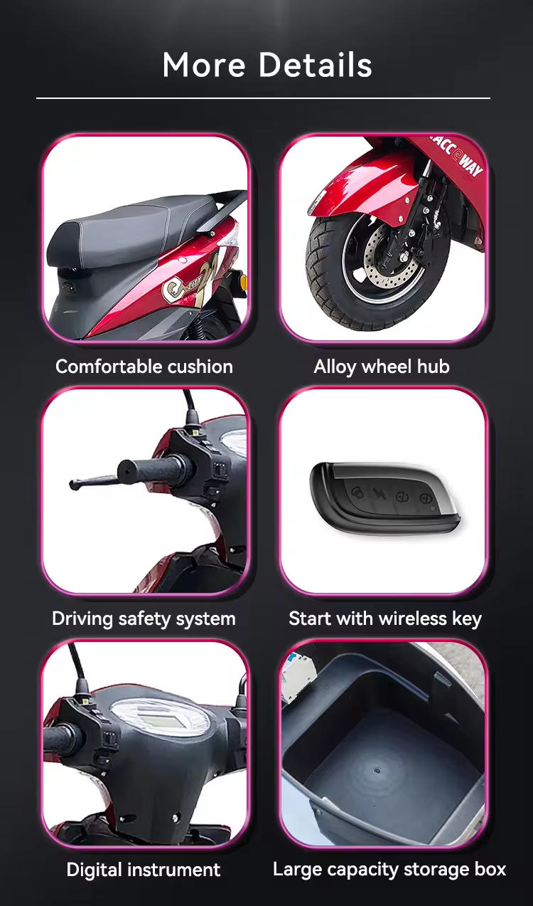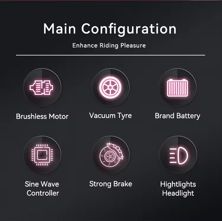 Tehokas sähköajoneuvo 1500W moottorilla 59 km toimintasäteellä ja 25 km/h suositusnopeudella Kantaa 150 kg levyjarrut 72V 20Ah akulla lataus 6–8 tuntia