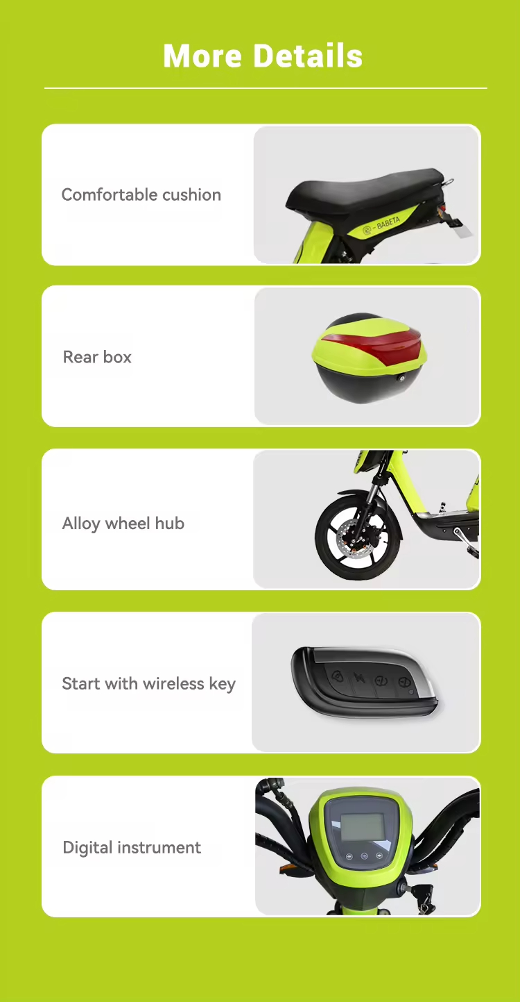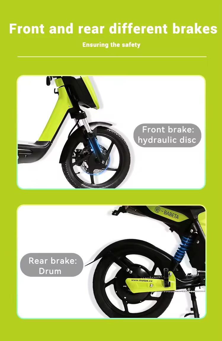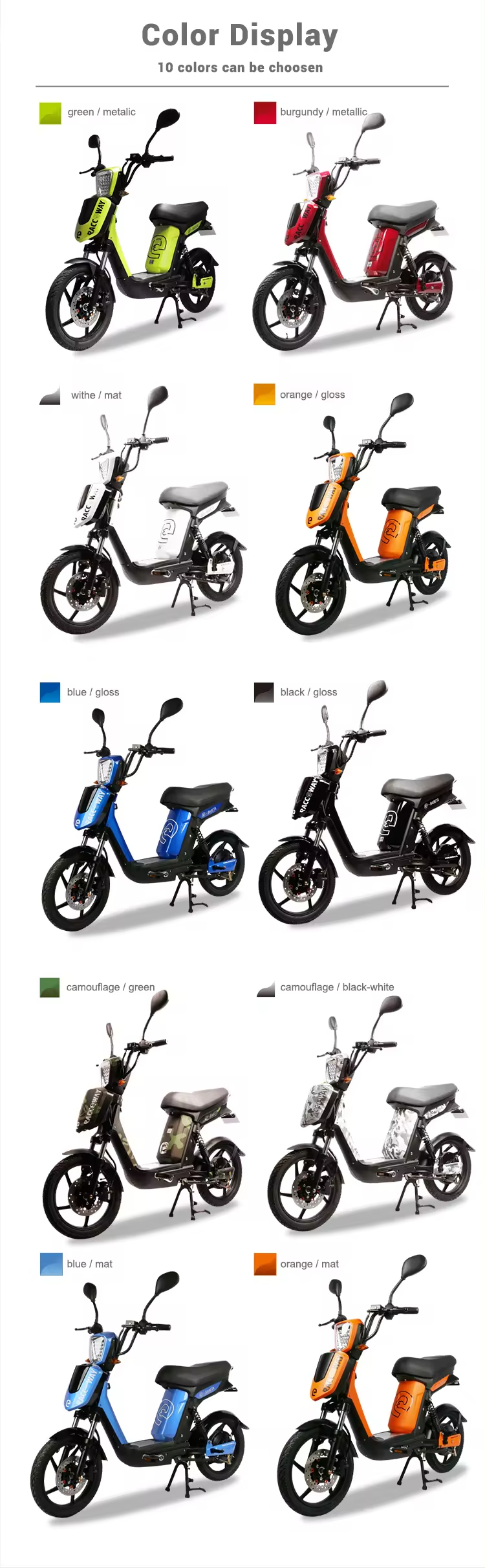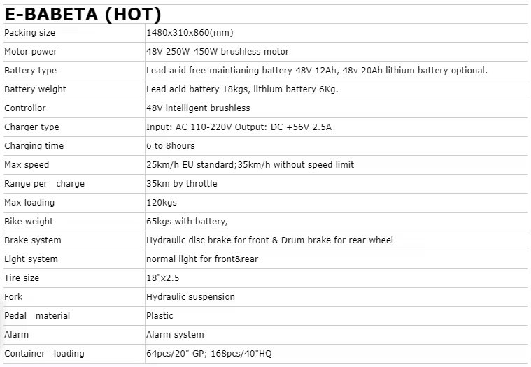 Sähkömopo joka kulkee 25 km/h noin 45 km yhdellä latauksella 250 W moottori 48V12Ah akku kantaa 120 kg
