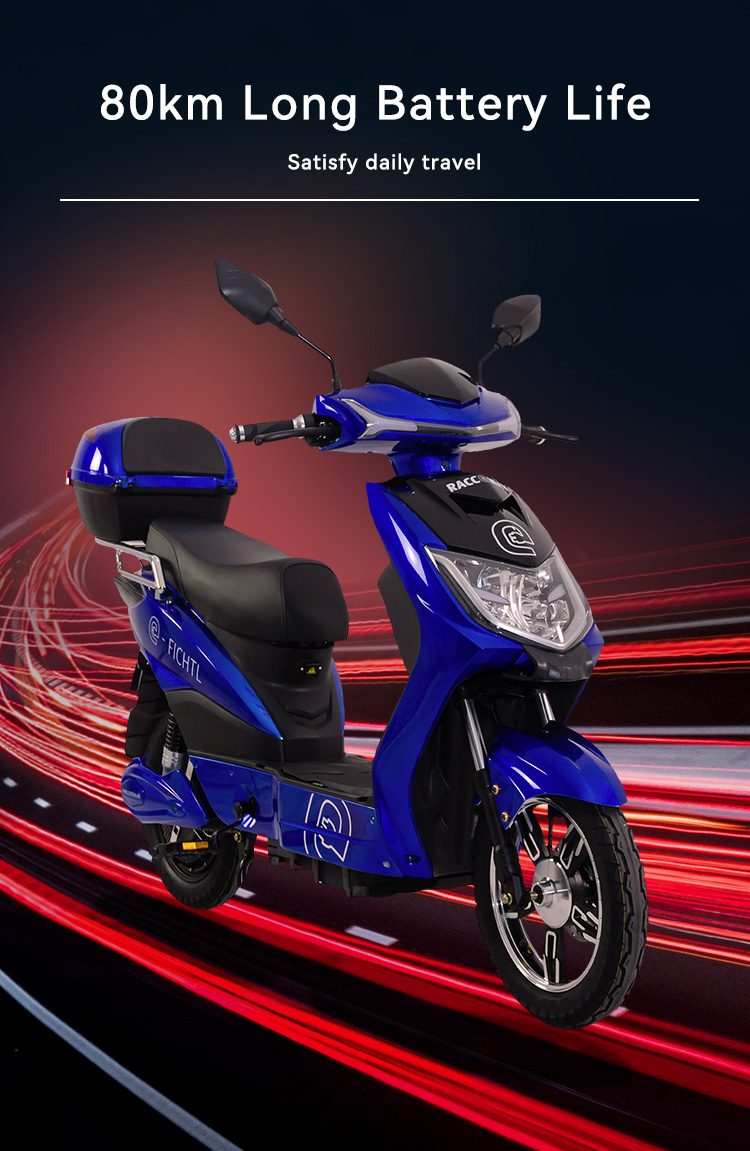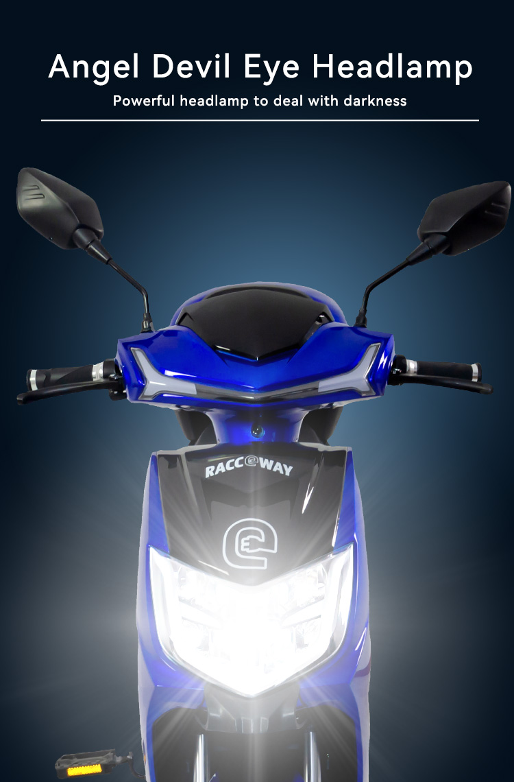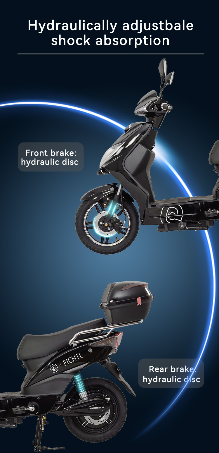 RACCEWAY® MOTOE-1F on käytännöllinen sähköskootteri lyhyille ja keskipitkille matkoille. 250 W (Max. 500 W) moottori, 48V 12Ah akku ja hydrauliset levyjarrut tekevät ajosta miellyttävää ja hallittua kaupunkiympäristössä.