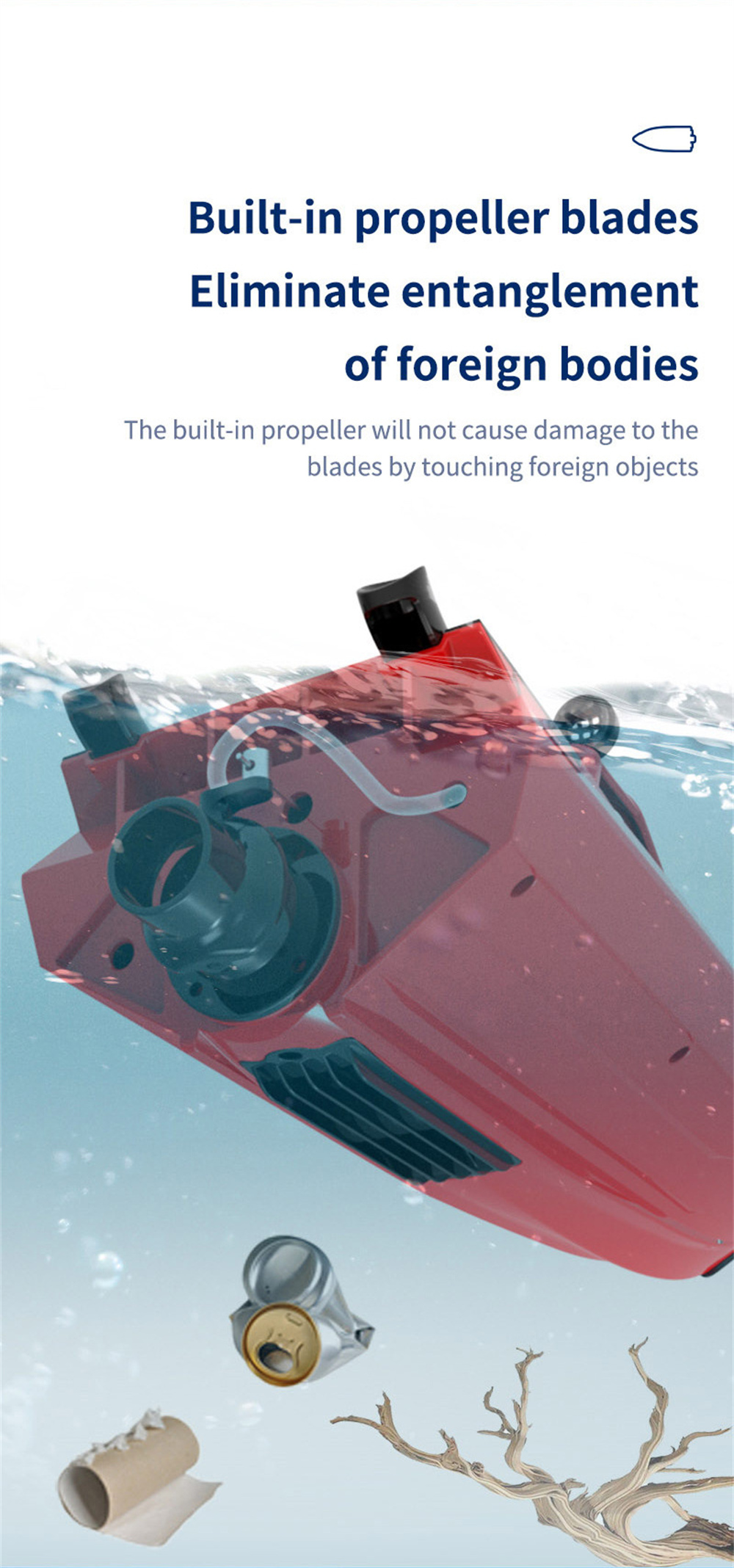 Runkoon sisäänrakennettu potkuri vähentää roskien tarttumista, sisäinen potkuri ei vahingoitu helposti osuessaan vieraisiin esineisiin.