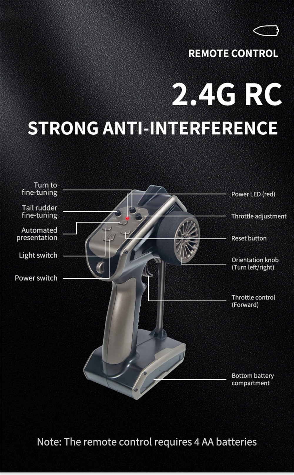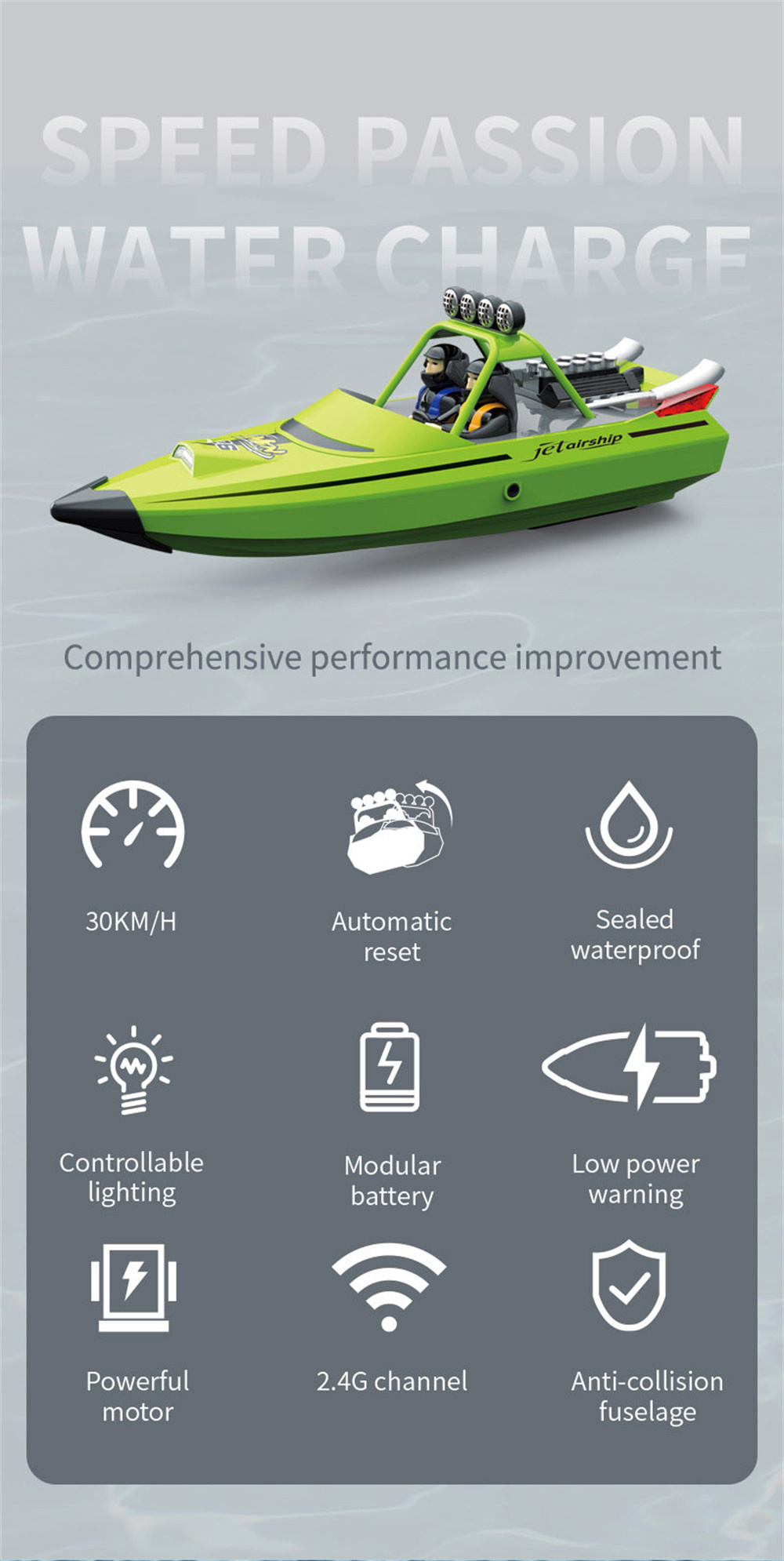 Portaattomasti säädettävä kaasusuhde: ohjattavuus muistuttaa oikeaa moottorivenettä, nopeutta voi lisätä kaasua lisäämällä, joten ajokokemus voi olla sekä rauhallinen että nopea.