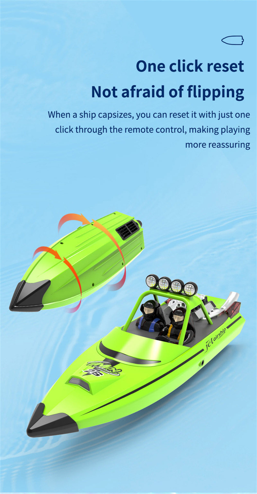 Yhden painikkeen oikaisu: jos vene kaatuu, sen voi kääntää oikein päin kauko-ohjaimesta yhdellä painalluksella, mikä tekee käytöstä huolettomampaa.
