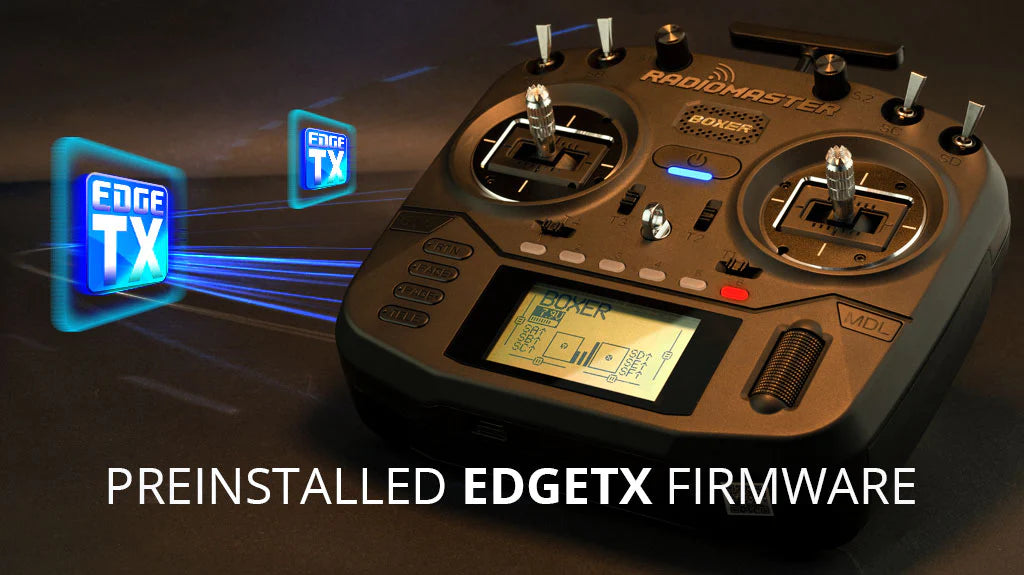 RadioMaster Boxer toimitetaan esiasennetulla EdgeTX-käyttöjärjestelmällä, joka hyödyntää radion laitteiston ominaisuuksia. RadioMaster tekee tiivistä yhteistyötä EdgeTX-tiimin kanssa ominaisuuksien kehittämiseksi ja käyttökokemuksen parantamiseksi sekä tukee avoimiin standardeihin perustuvia projekteja.