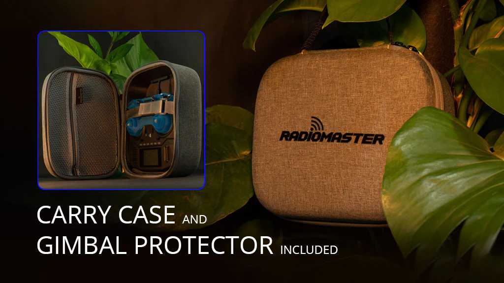 - RadioMaster-kantolaukku ja gimbalisuoja sisältyvät pakkaukseen