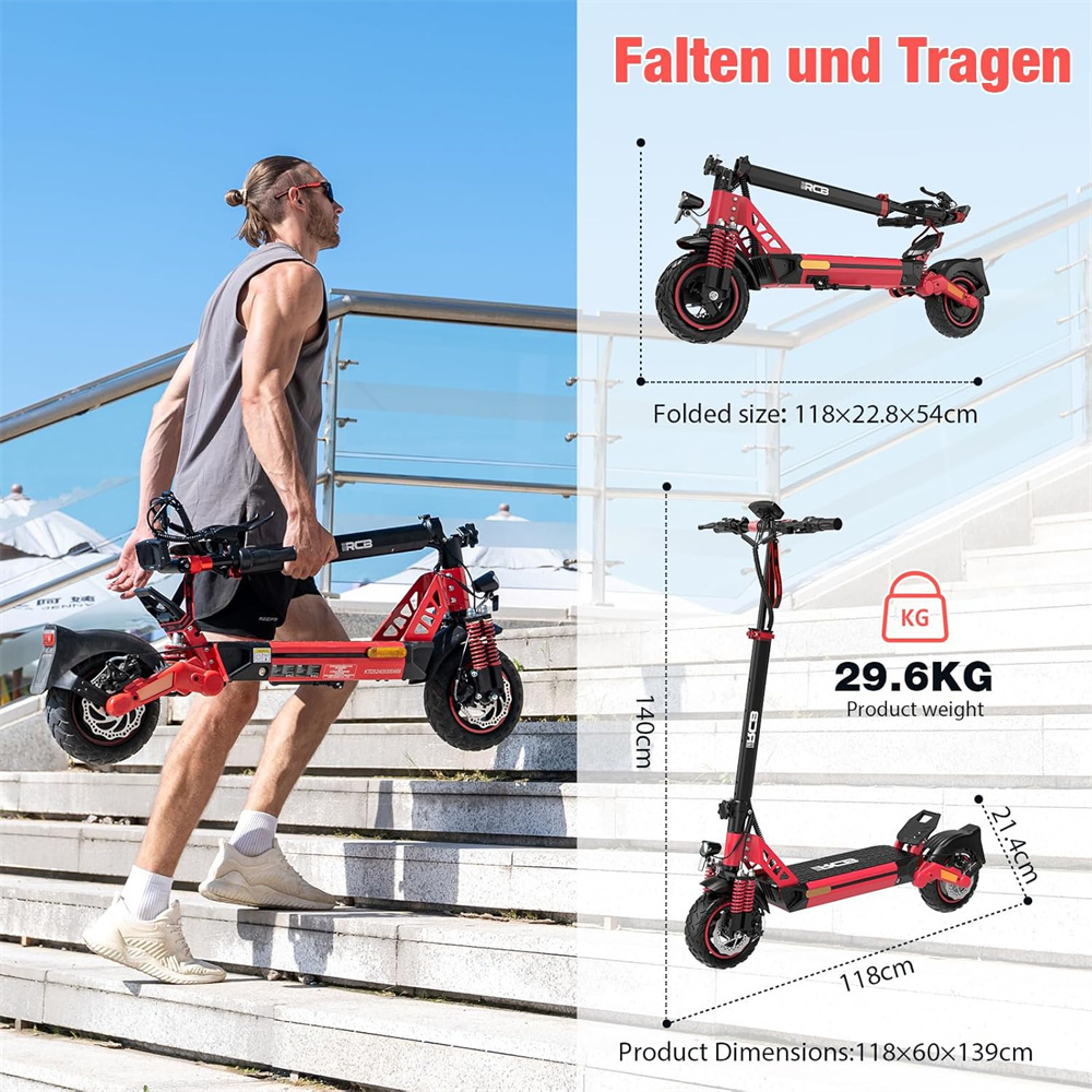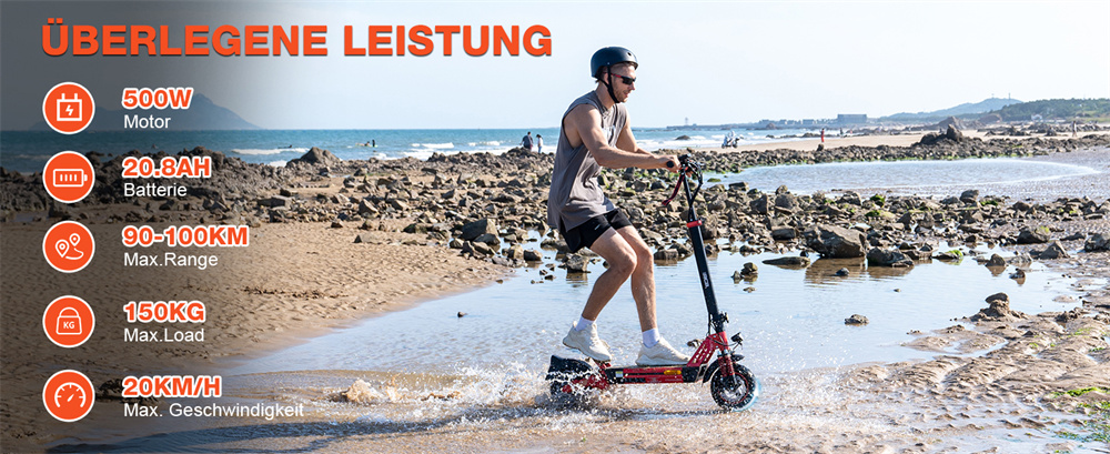 RCB D5 sähköpotkulauta ABE-tieliikennehyväksyntä 48V 20.8Ah 500W 20km/h 10-tuumaiset renkaat 90-100km toimintasäde