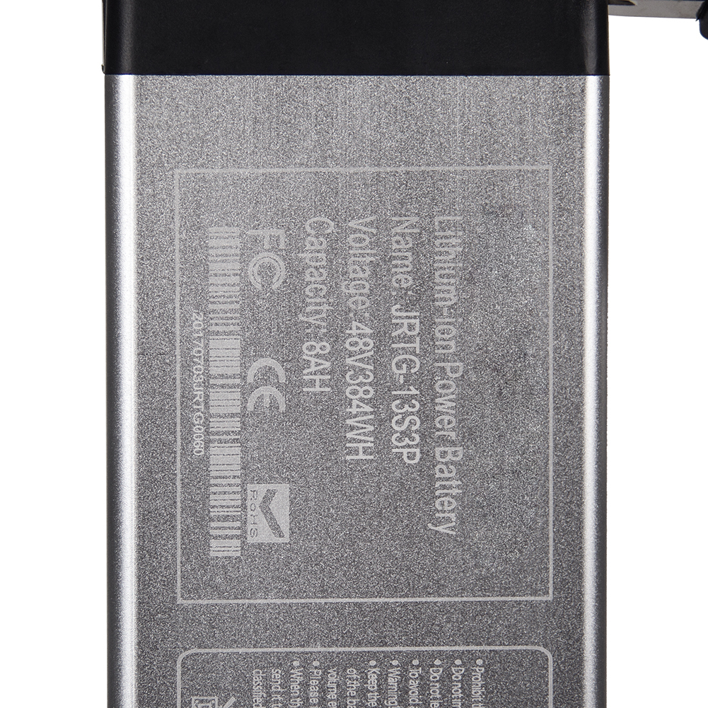 - Litiumioni-tehoakku 48V, kapasiteetti 8Ah (384Wh)