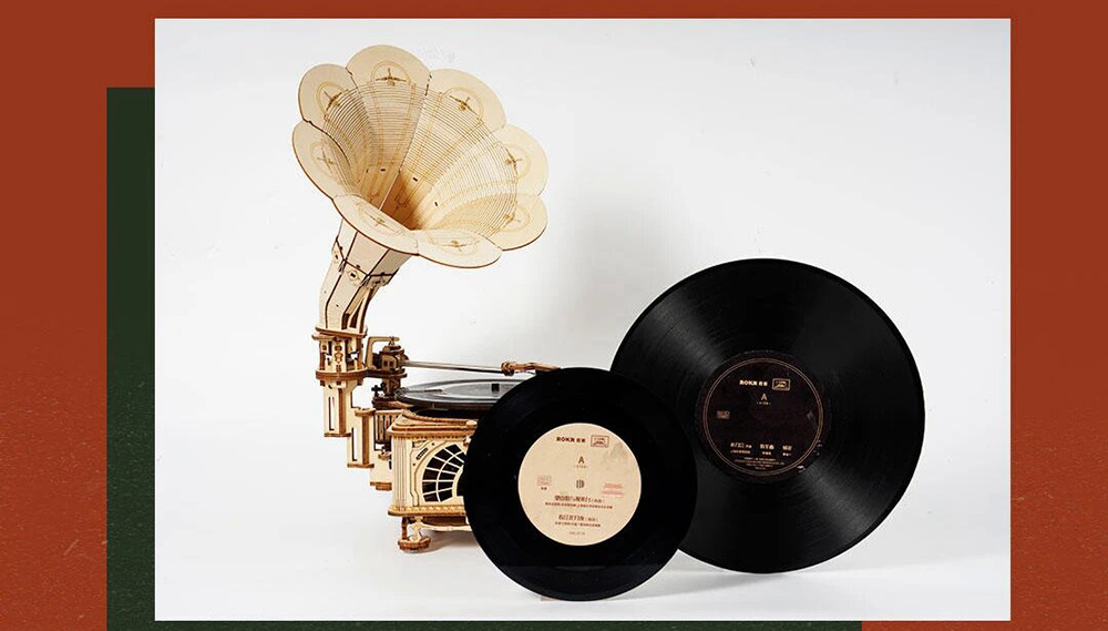 Tämä gramofoni on huolellisesti suunniteltu DIY-puinen rakennussarja, joka pystyy soittamaan vinyylilevyjä oikeasti.