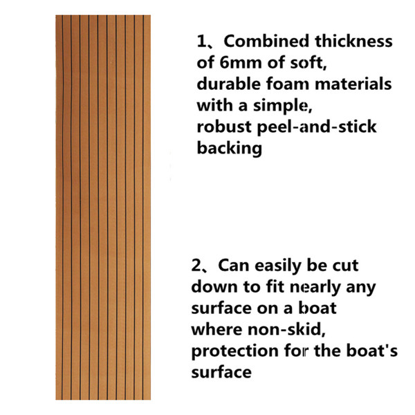 EVA-vaahtoiset, teak-kuvioidut veneen kannen suojalevyt tarjoavat miellyttävän pehmusteen ja pitävän, turvallisen pinnan myös märkänä. Levy on helppo leikata ja asentaa, ja se suojaa veneen pintoja kulumiselta.