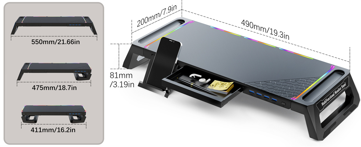 S56 RGB näytön nostoteline taittuva pöytäteline neljä USB-porttia puhelinteline