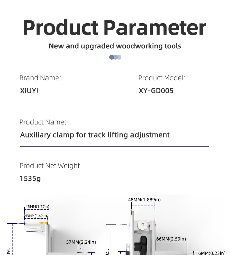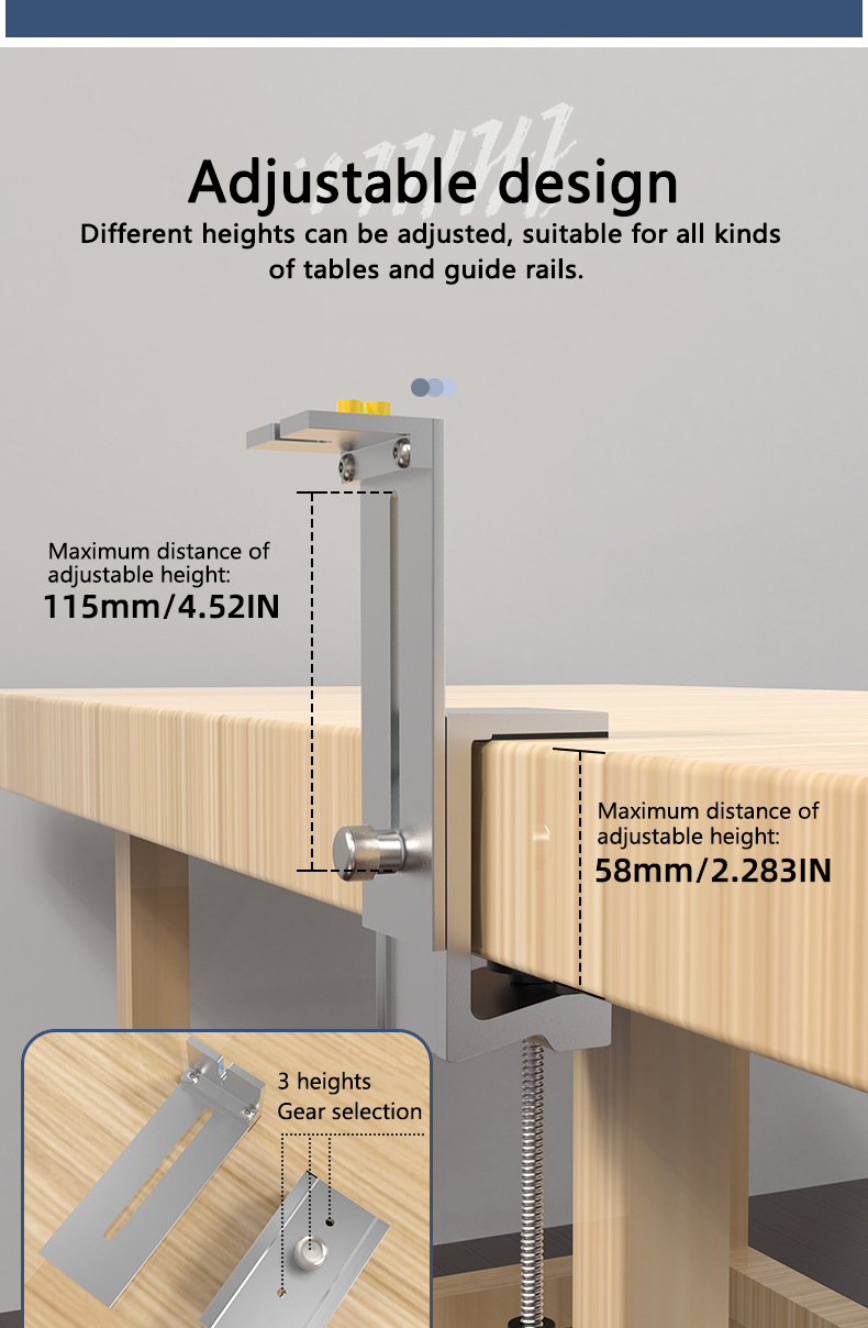 Säädettävän rakenteen ansiosta tämä työkalu sopii helposti eri korkuisille pöydille ja kiskoille, mikä tekee siitä monikäyttöisen apuvälineen monenlaisiin asennus- ja kiinnitystöihin.