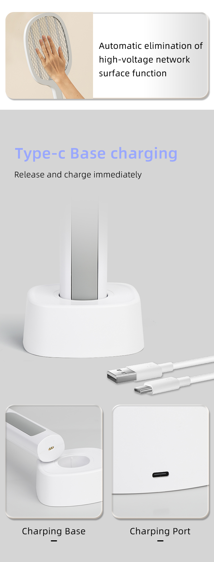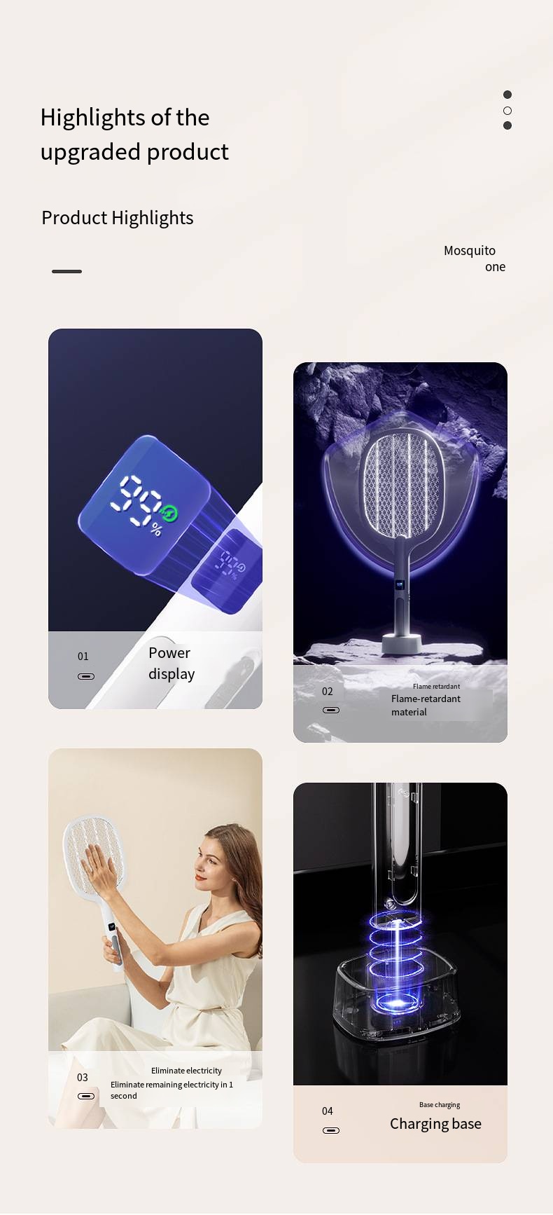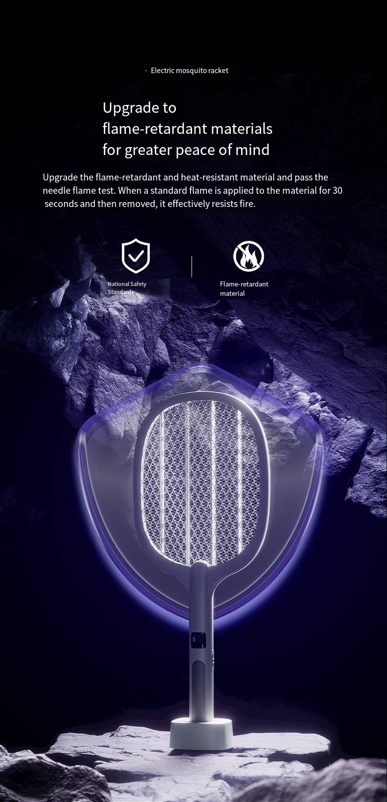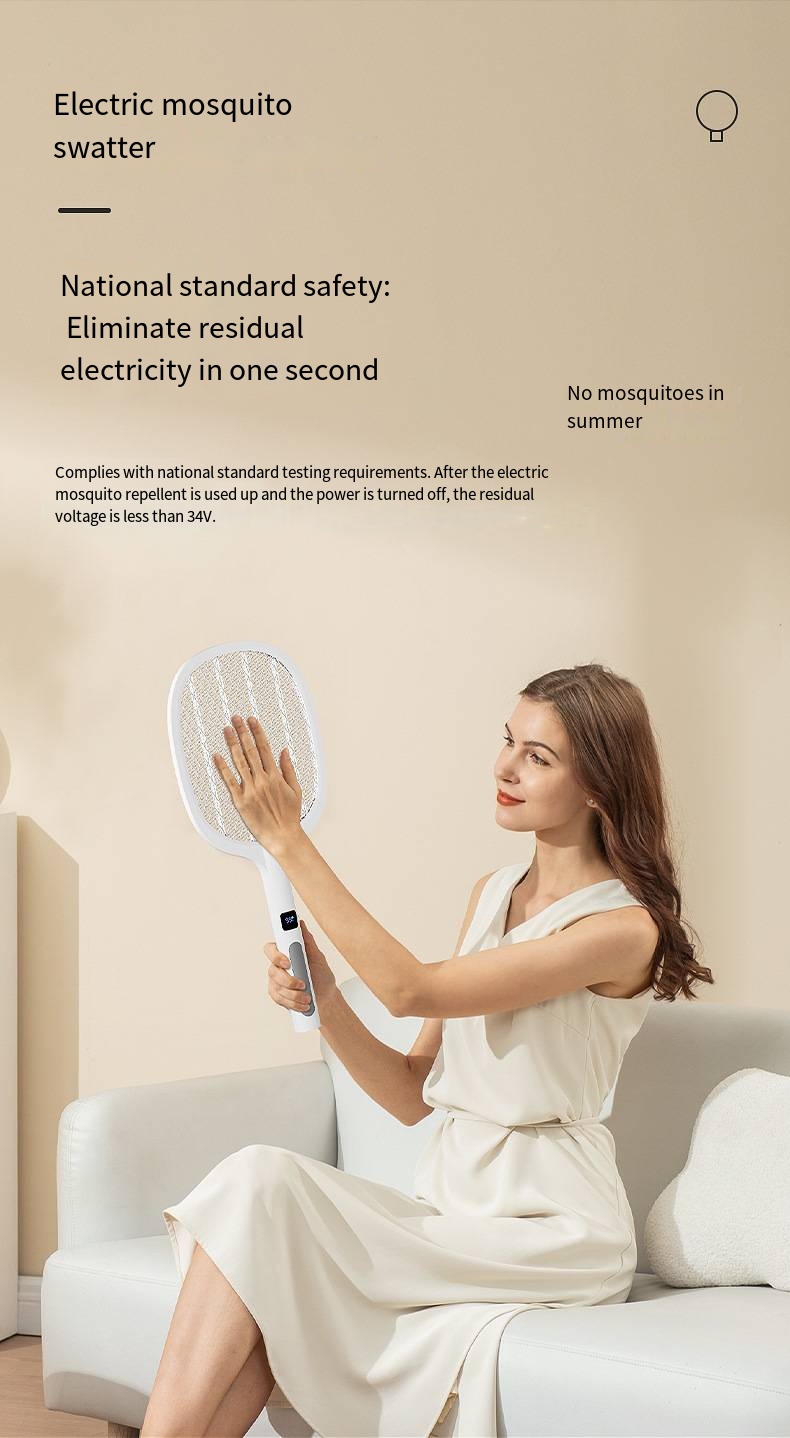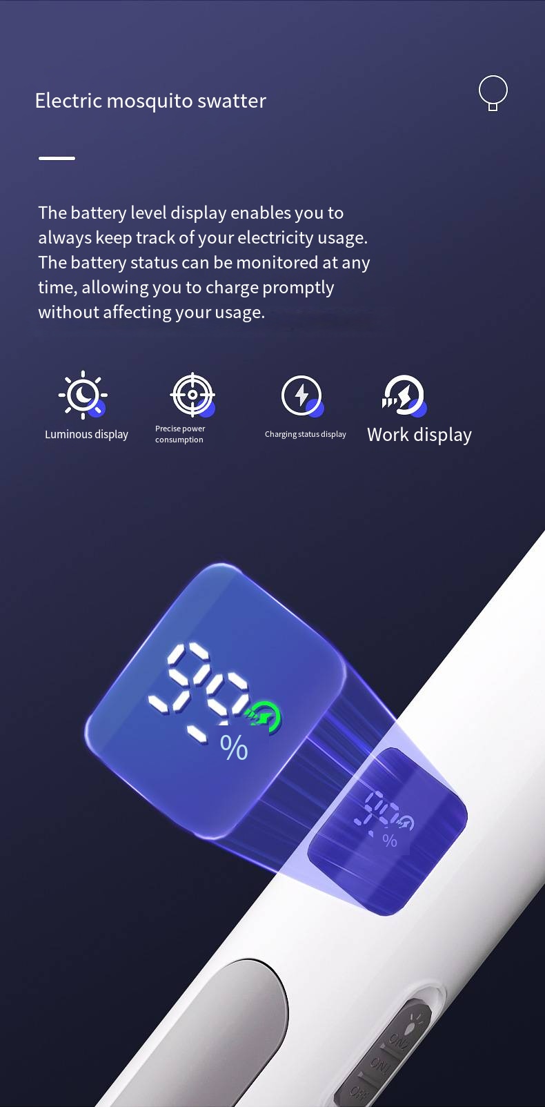 Sähköinen hyttysläppä digitaalisella näytöllä, C-tyypin ladattava, violetti valonauha ja automaattitila