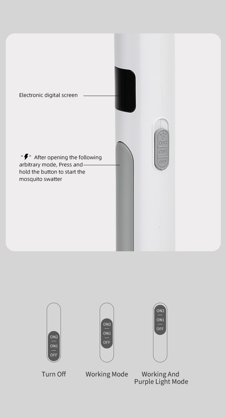 2. Violetti valokaista: Sisäänrakennettu violetti valo houkuttelee hyttysiä ja parantaa tehoa. Kuusi hyttysiä houkuttelevaa lamppuhelmeä tukee tehokasta toimintaa.