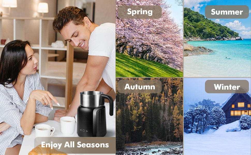 Monikäyttöinen maidonvaahdotin, jossa on älykäs kosketusnäyttö. Valaistut painikkeet tarjoavat 9 asetusta: kylmä vaahto, kuohkea vaahto, kuuma vaahto, tiheä vaahto, kaakao ja lämmin maito, laktoositon maito -vaahto, cashew-maito -vaahto, soijamaito -vaahto sekä jogurttimaito. Valmista pehmeä, baristatason vaahto suosikkijuomiisi helposti.