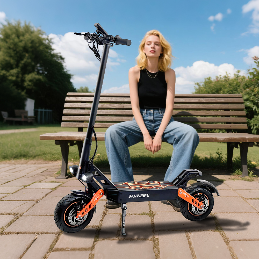 Sanweipu F7-2 on tehokas kaksimoottorinen sähköpotkulauta kaupunki- ja harrasteajoon. Vahva alumiiniseoksesta valmistettu runko, 10-tuumaiset renkaat sekä edessä ja takana oleva jousitus tuovat ajomukavuutta myös epätasaisilla alustoilla. Kaksinkertaiset hydrauliset levyjarrut ja LED-valot parantavat turvallisuutta, ja LED-näyttö helpottaa nopeuden ja akun tason seuraamista.