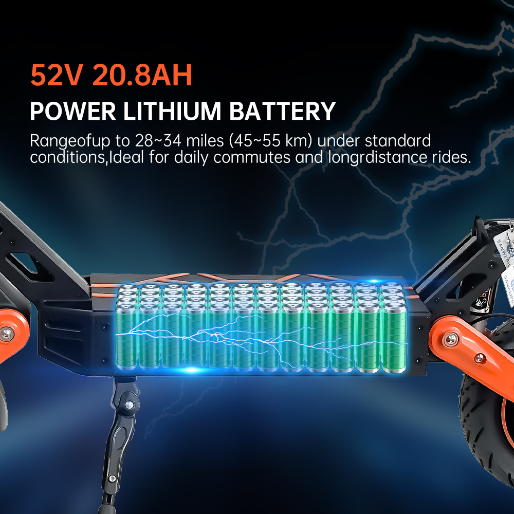 - 52V 20.8AH akku jopa 45–55KM toimintasäteellä