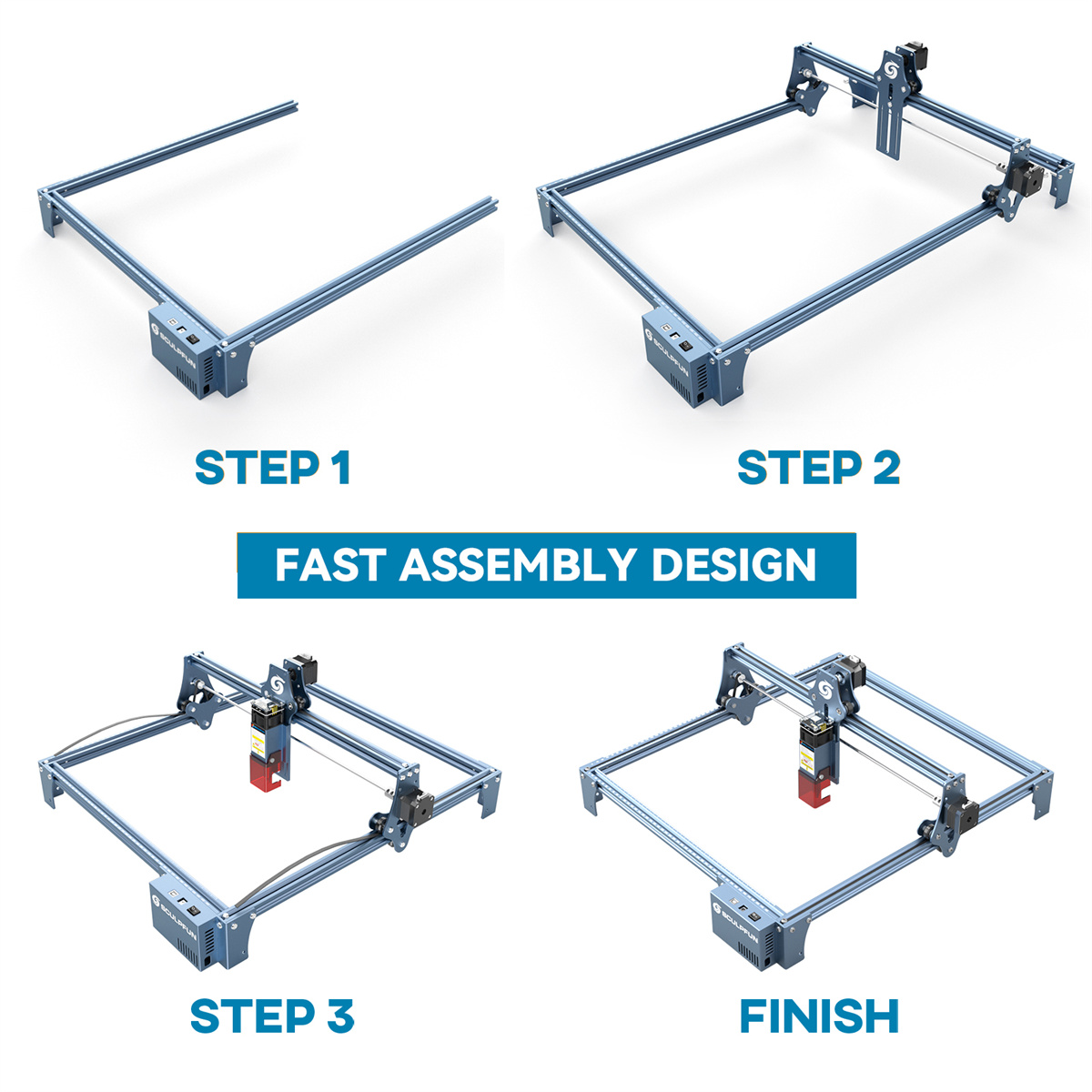 3. Jäykkä ja helposti koottava rakenne: täysmetallinen runko parantaa tarkkuutta. Kokoaminen 10–20 minuutissa. Runkokehikko on pitkäikäinen ja päivitettävissä, kehikkoa voi käyttää uusien laserien kanssa tai pidentää metallipalkkeja kaiverrusalueen kasvattamiseksi.