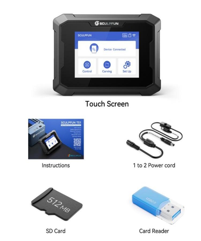 SCULPFUN TS1 -kosketusnäytön pakkauslista:
