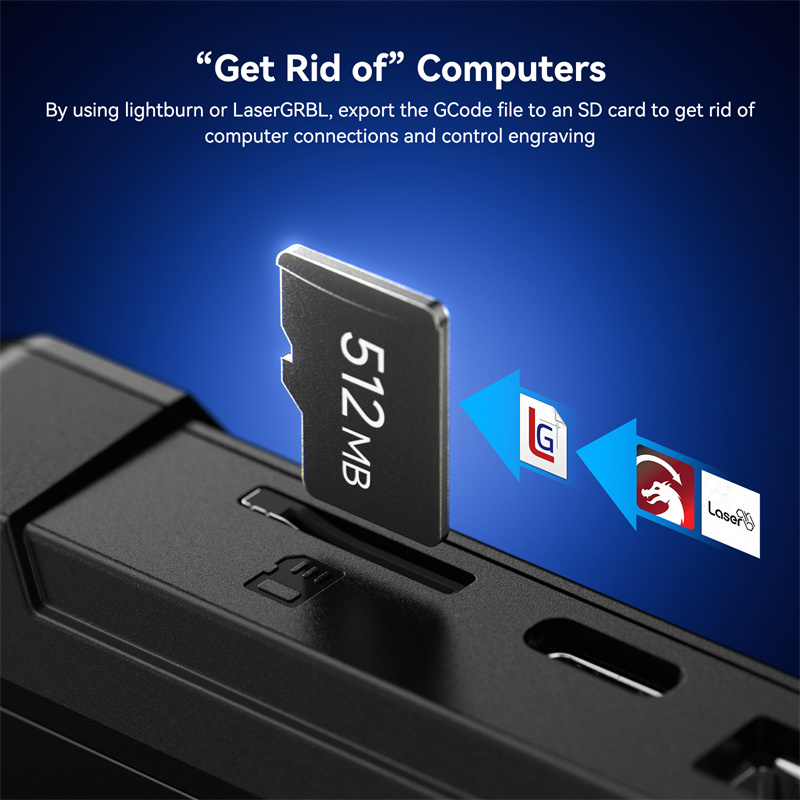 1. Offline-kaiverrus: tallenna kaiverrus- tai leikkaustiedostot SD-kortille ja suorita työ 3.5 tuuman kosketusnäytöltä ilman tietokonetta.