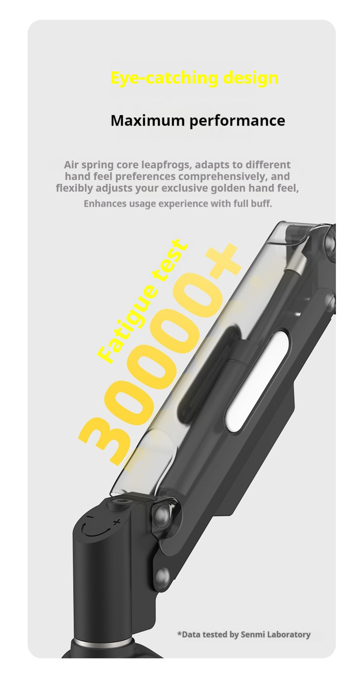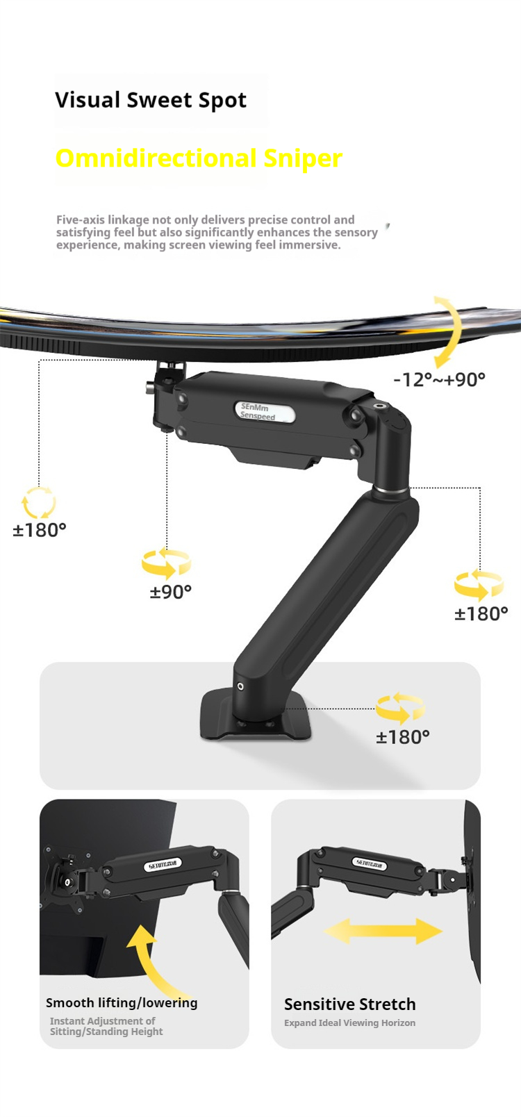 3. Laajennettu varren ulottuvuus: säätö 118–565 mm, joka tehostaa työtilaa ja näytön sijoittelun joustavuutta.