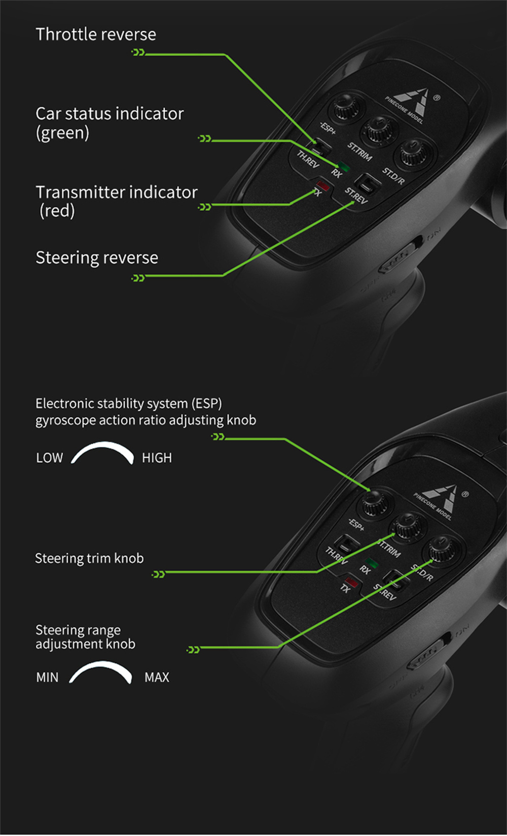 Ohjausetäisyys: 10 0m Toiminnot: eteenpäin, taaksepäin, vasen, oikea Suhteellinen ohjaus: portaaton nopeus- ja ohjaussäätö |