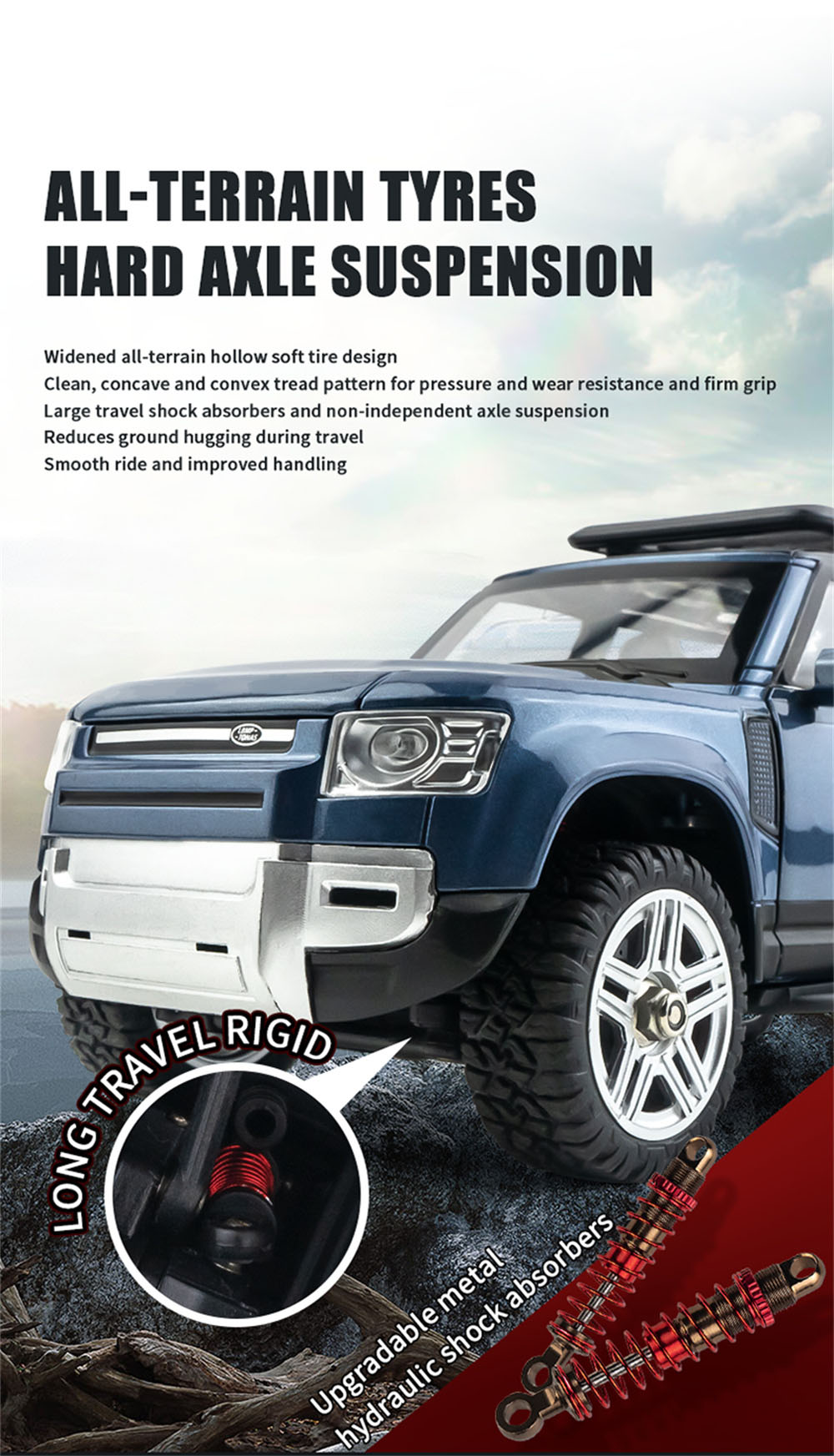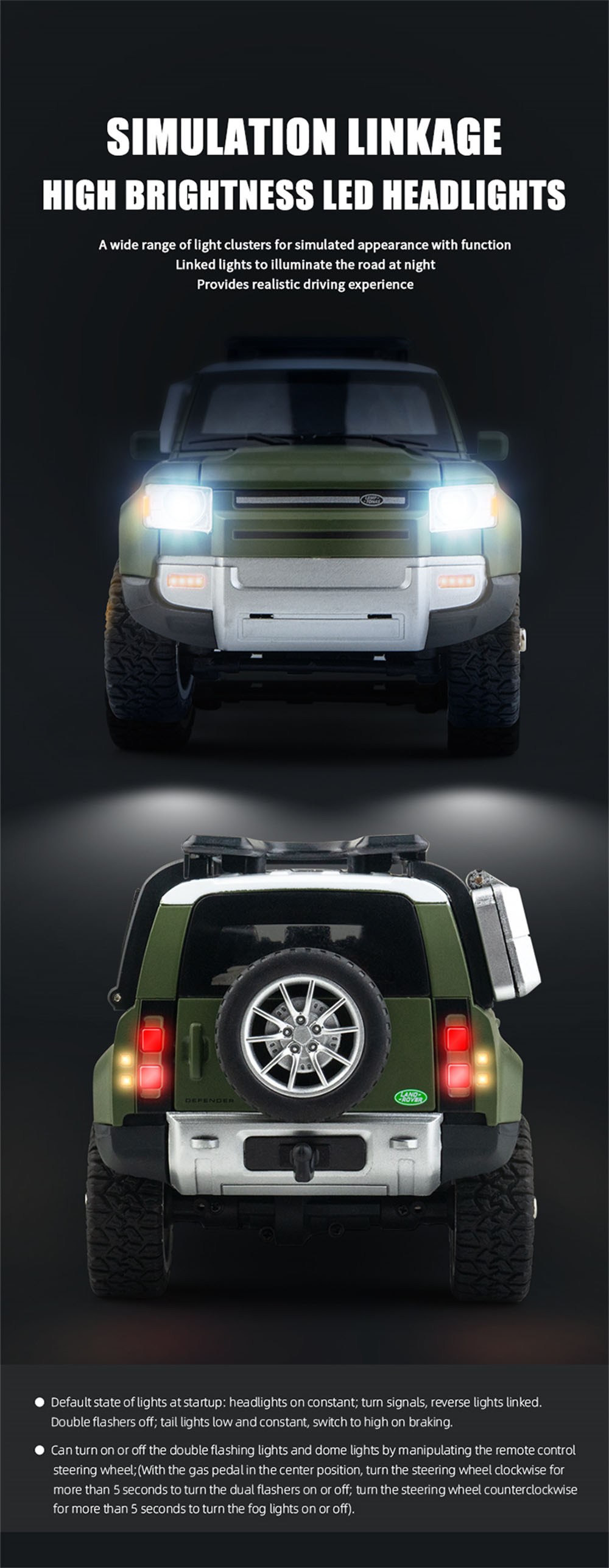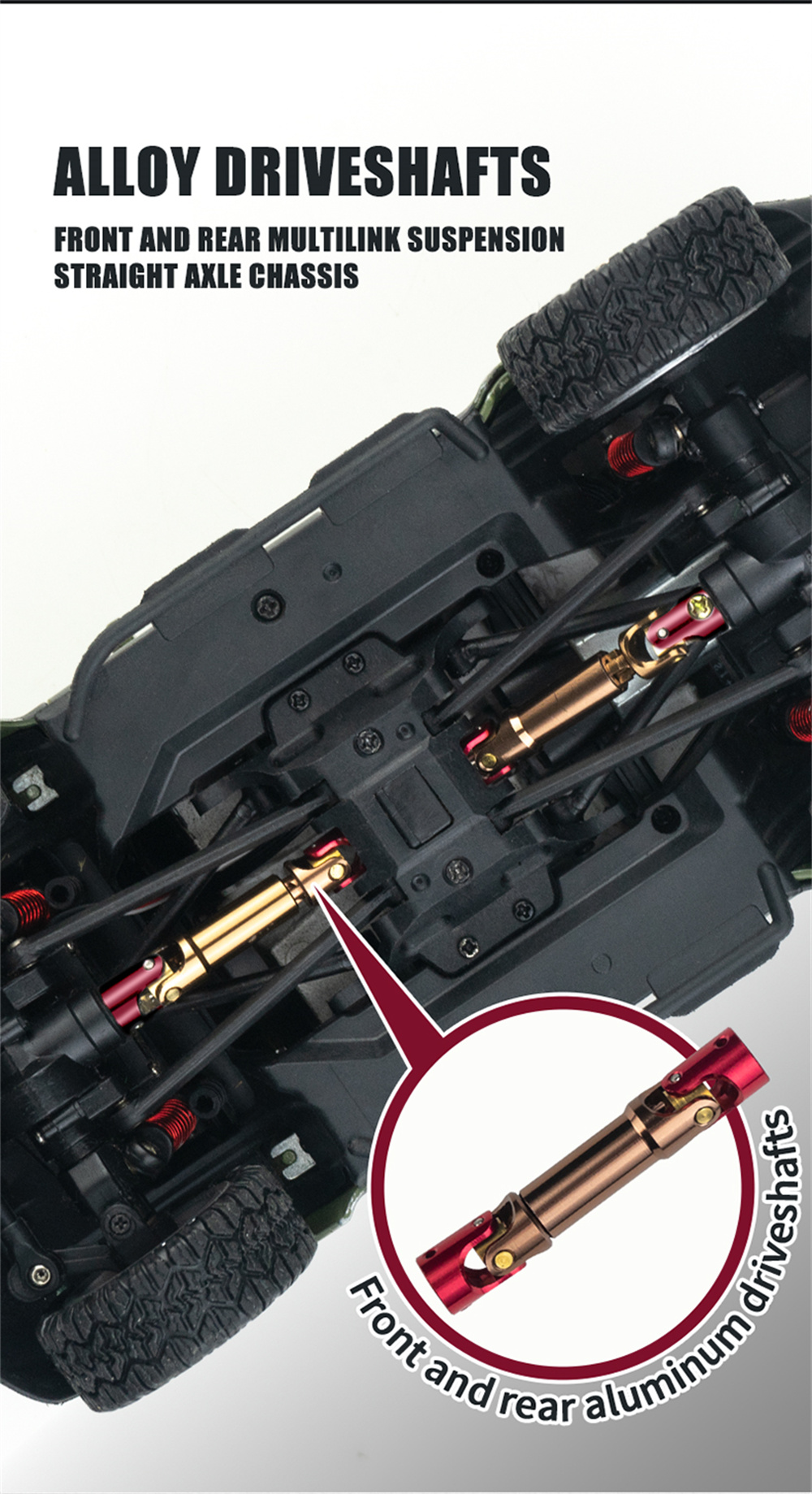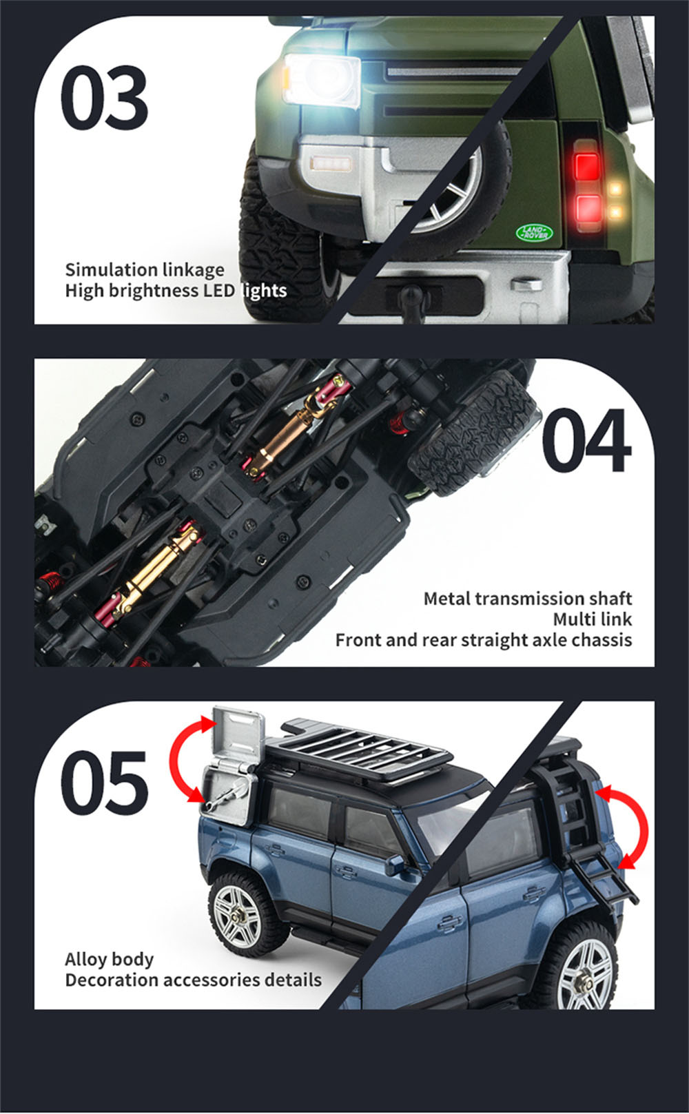 Tämä SG PINECONE FOREST 2402 on 1/24-mittakaavainen, nelivetoinen RC-auto, jossa on metallisia voimansiirto-osia, realistinen metallinen korikuori avautuvilla ovilla sekä monipuoliset valotoiminnot. Se soveltuu kokonsa ja nopeutensa ansiosta sekä sisä- että ulkokäyttöön.
