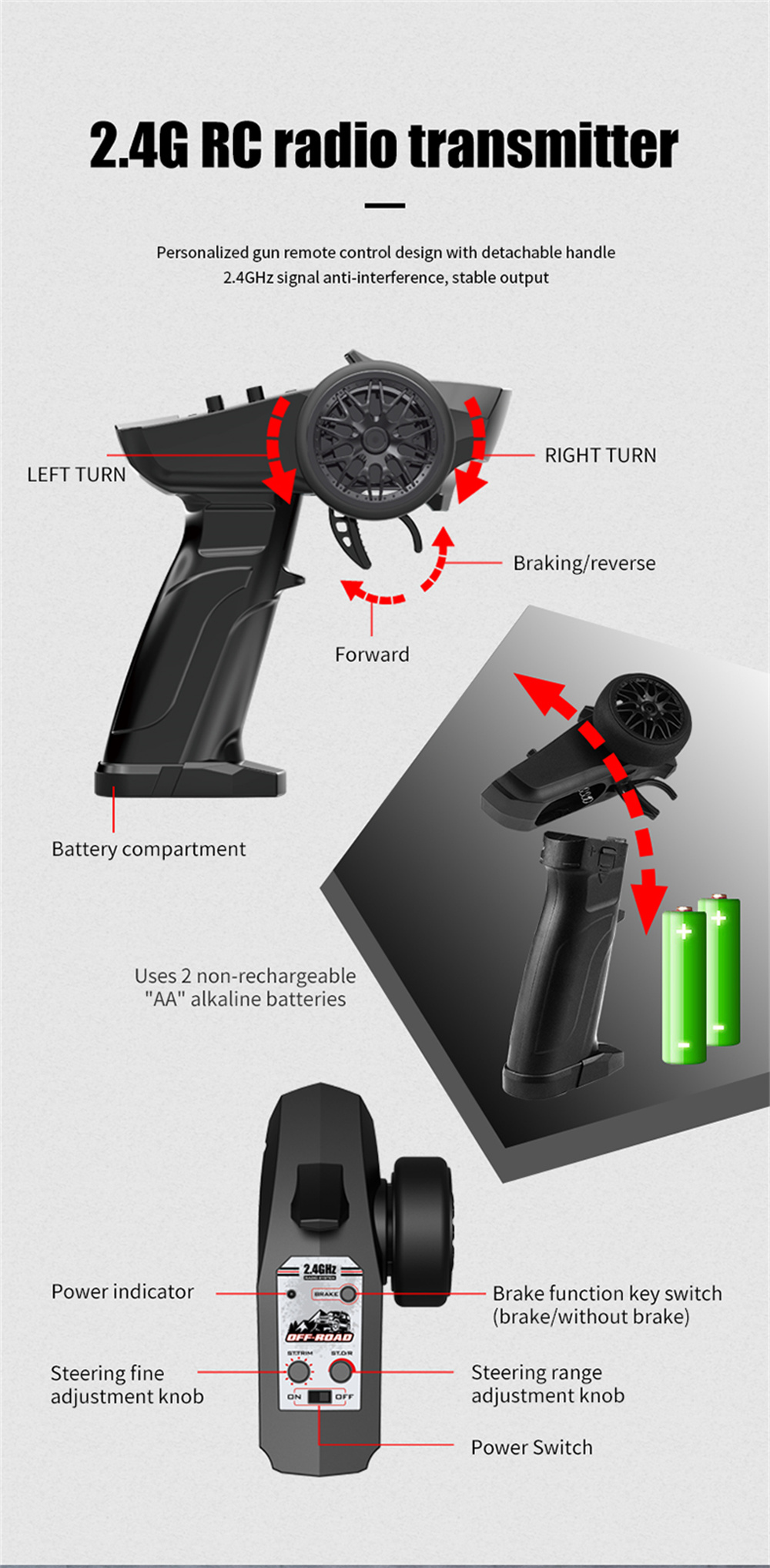 Taajuus: 2.4 GHZ Virtalähde: 2 x AA-paristo (ei sisälly pakkaukseen) |