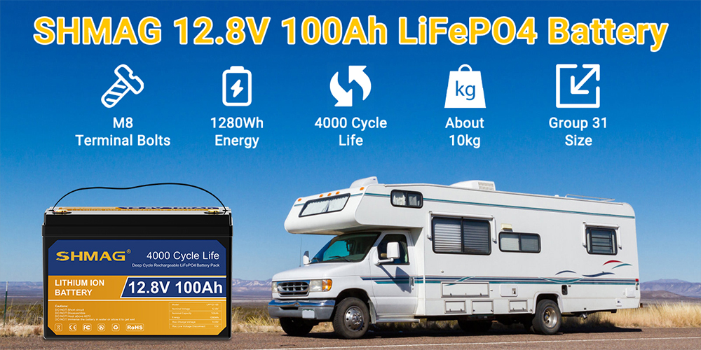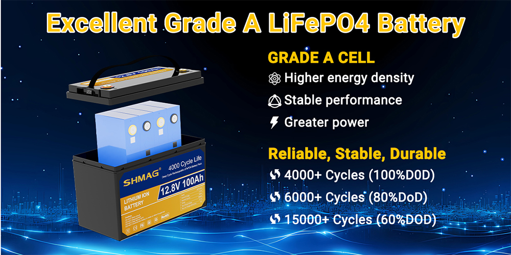 SHMAG 12.8V 100Ah LiFePO4 akku 1280Wh 4000 sykliä pitkäikäinen nopea lataus varavoima retkeilyyn