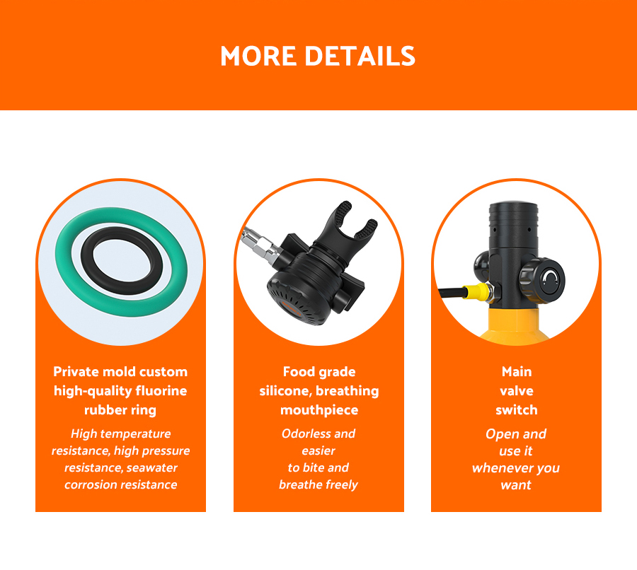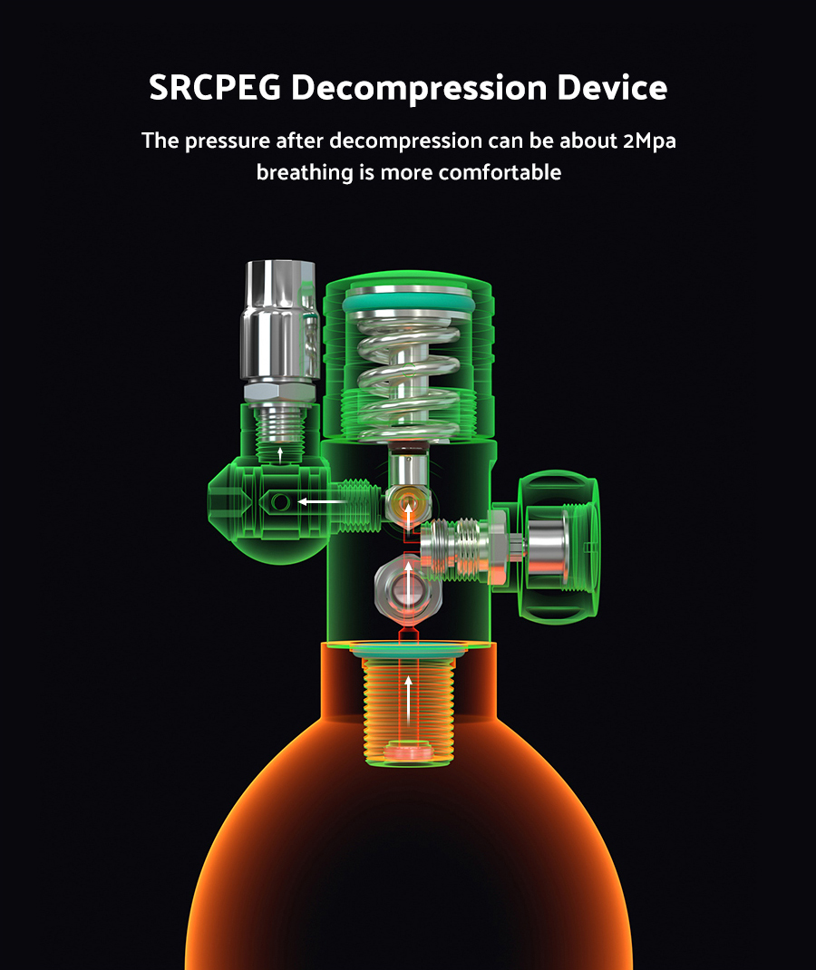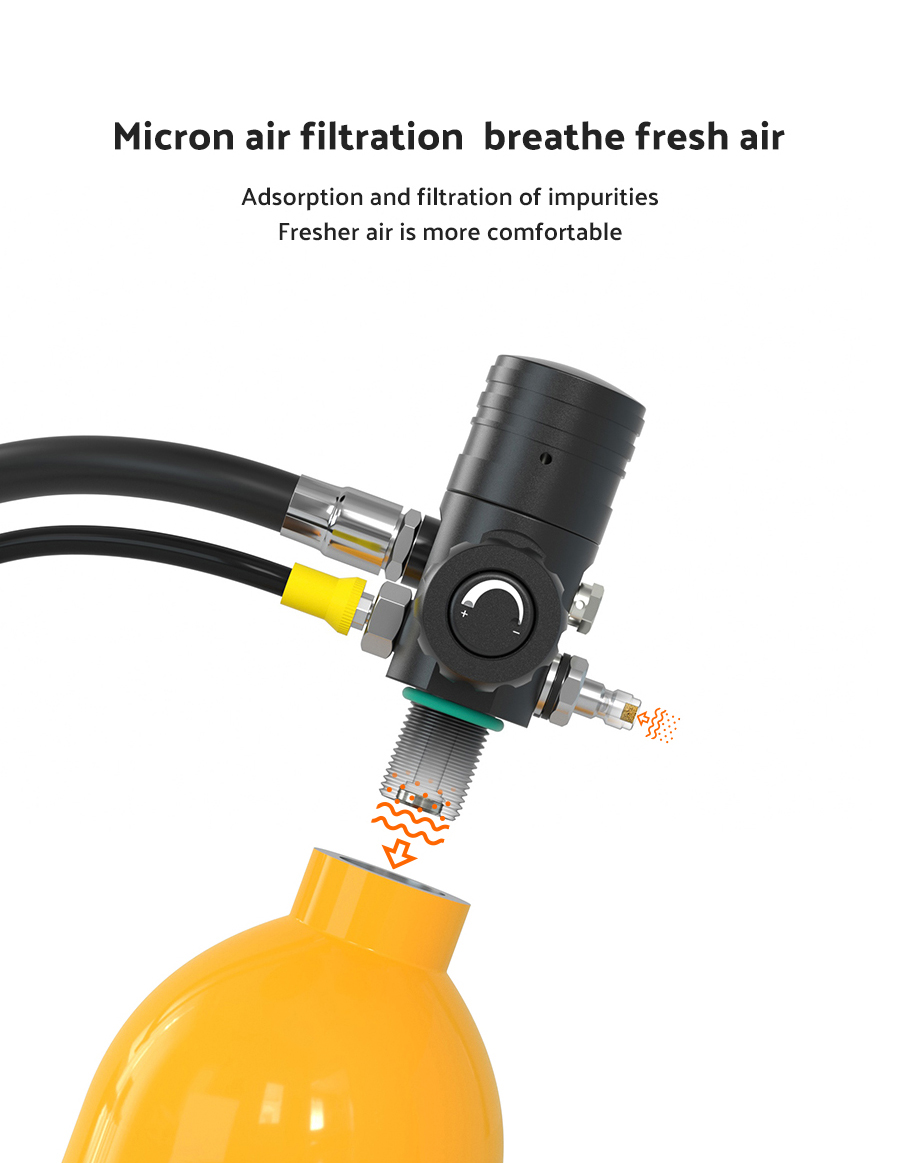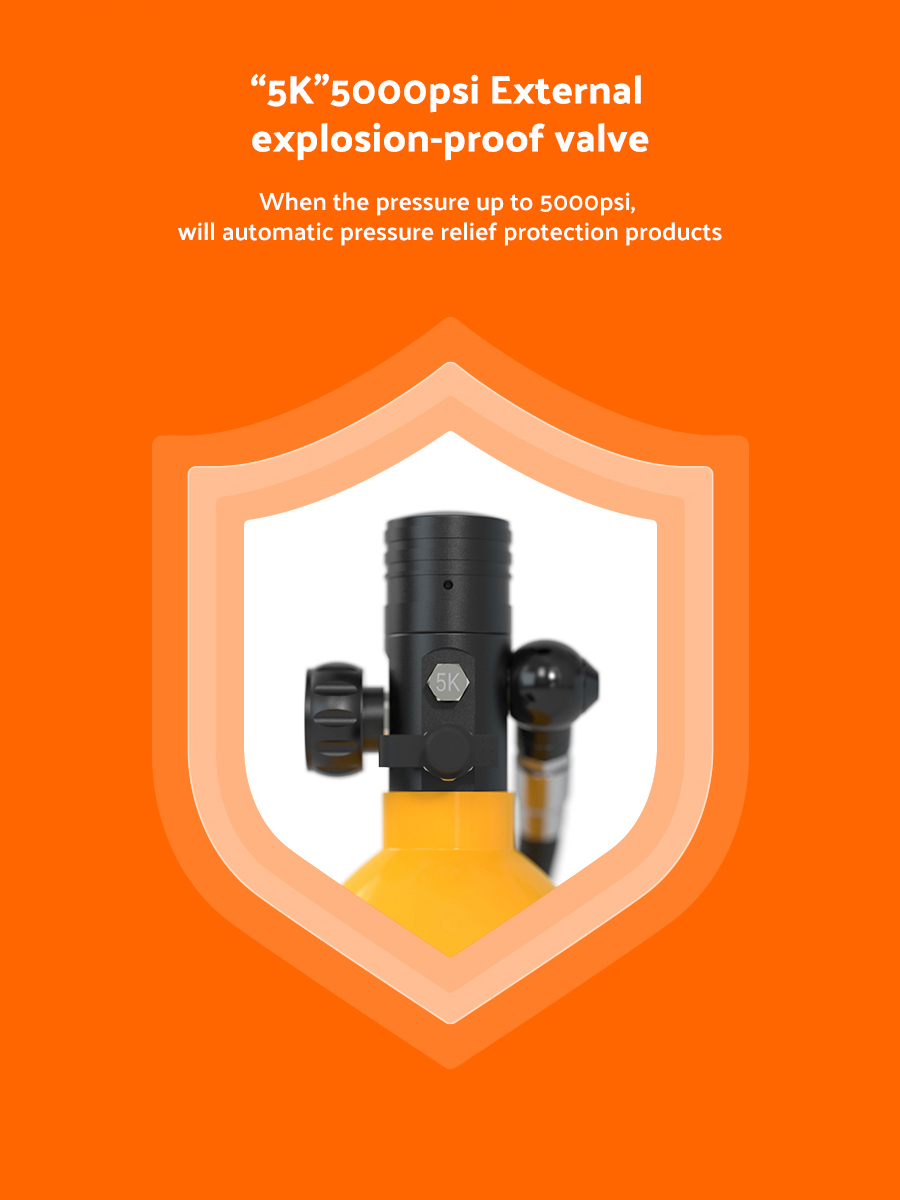 1. Sukelluspullo on valmistettu 6061-ilmailualumiinista, ja sen pinnassa on ruiskumaalaus. Pullo kestää korkeaa painetta, on kestävä ja vastustaa meriveden aiheuttamaa korroosiota.