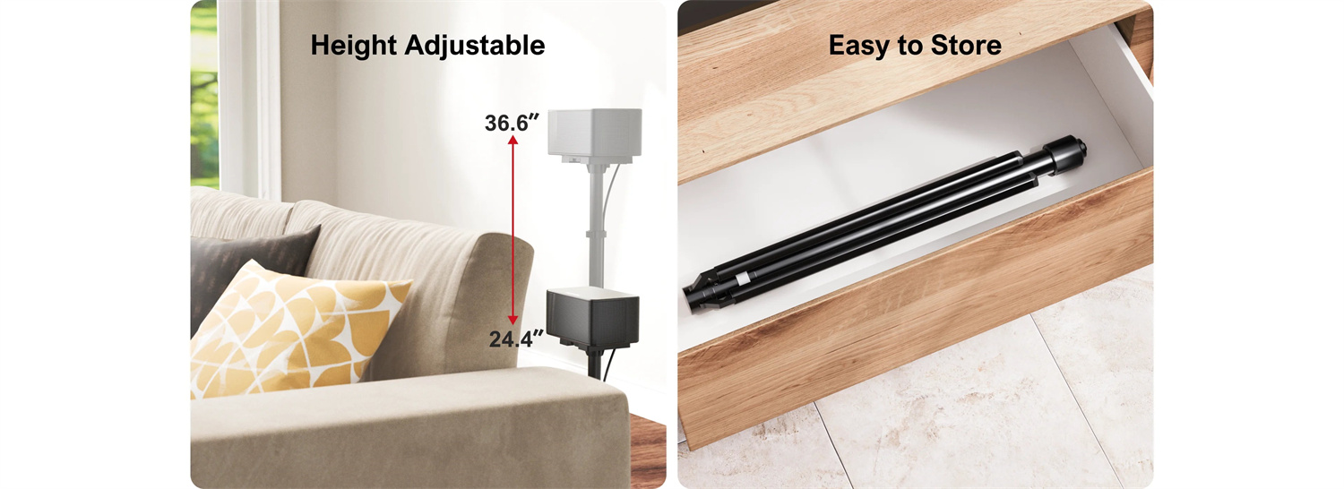 Helppo säätö välillä 24.4–36.6 tuumaa erilaisiin kotikäyttöihin.