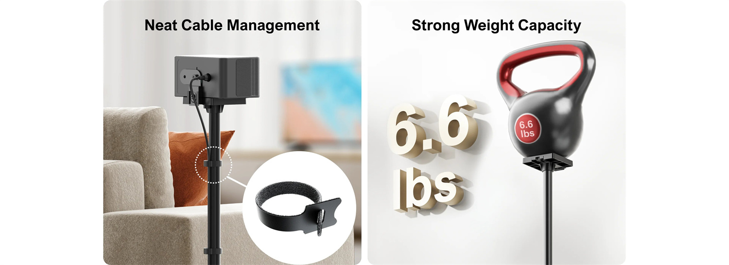 Vakaa ja helppokäyttöinen jalustapari kotiteatteriin ja musiikin kuunteluun. Korkeussäätö, siisti kaapelinhallinta ja useat kiinnikevaihtoehdot helpottavat asennusta eri kaiuttimille. Yhteensopiva myös ULTIMEA Poseidon Series Soundbar -järjestelmän kanssa.