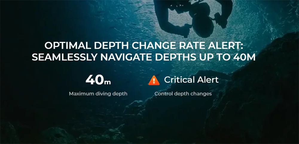 - Syvyyden muutoksen nopeuden asetus: voit määrittää suurimman sallitun syvyyden muutosnopeuden tai poistaa rajan käytöstä. Kun muutosnopeus ylittää asetetun arvon, näyttö varoittaa käyttäjää, jotta sukellustautiin liittyvä riski ei kasva liian nopeiden syvyysmuutosten vuoksi. Kun käyttäjä valitsee ei rajoitusta, tämä toiminto poistuu käytöstä. Suositeltu enimmäisnopeus alaspäin on 18m/min ja ylöspäin 9m/min.