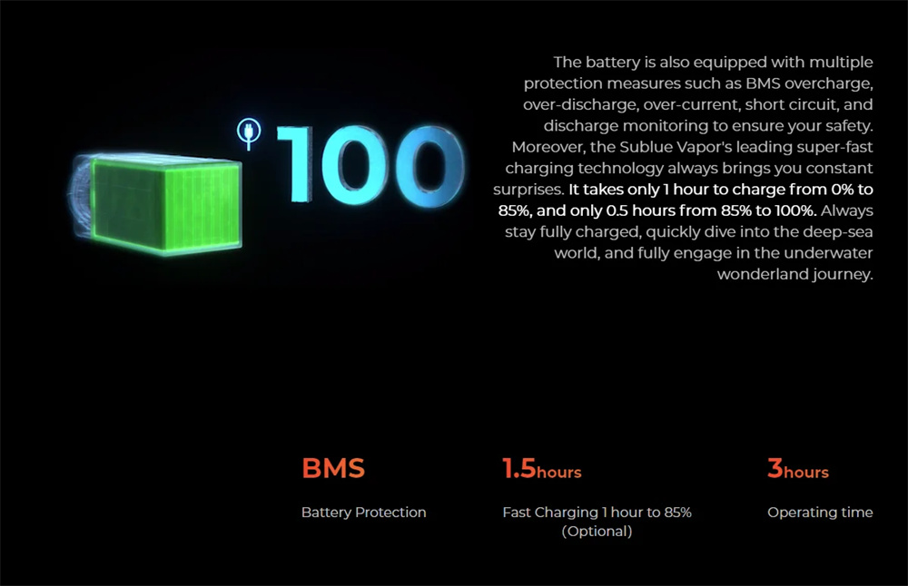 Sublue Vapor vedenalainen sukellusskootteri pumppusuuttimella käsikäyttöinen jopa 10,9 km/h 40 m