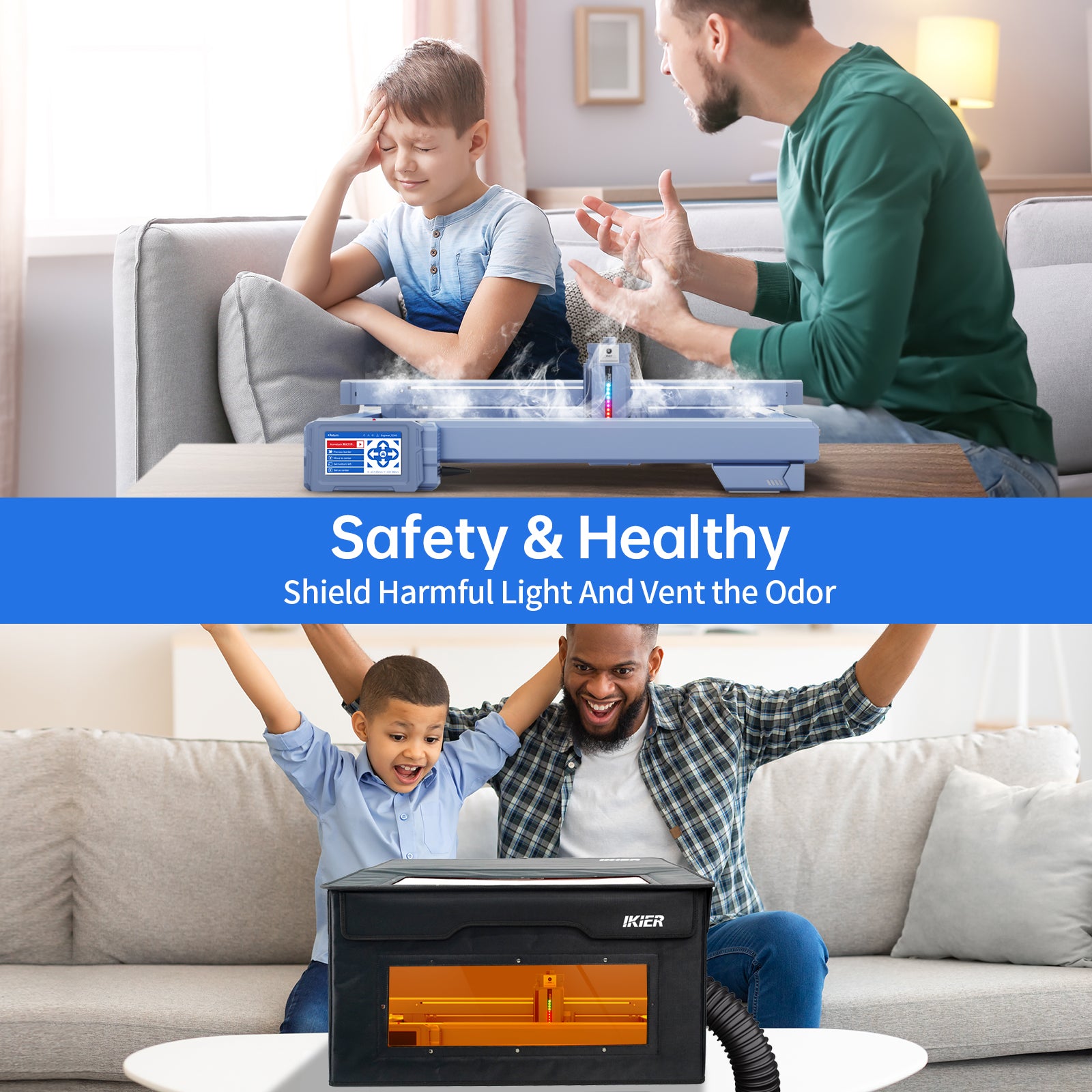 Suojakotelo iKier E1 taitettava pölytiivis laserkaiverrimille silmiensuoja savun ja melun eristys