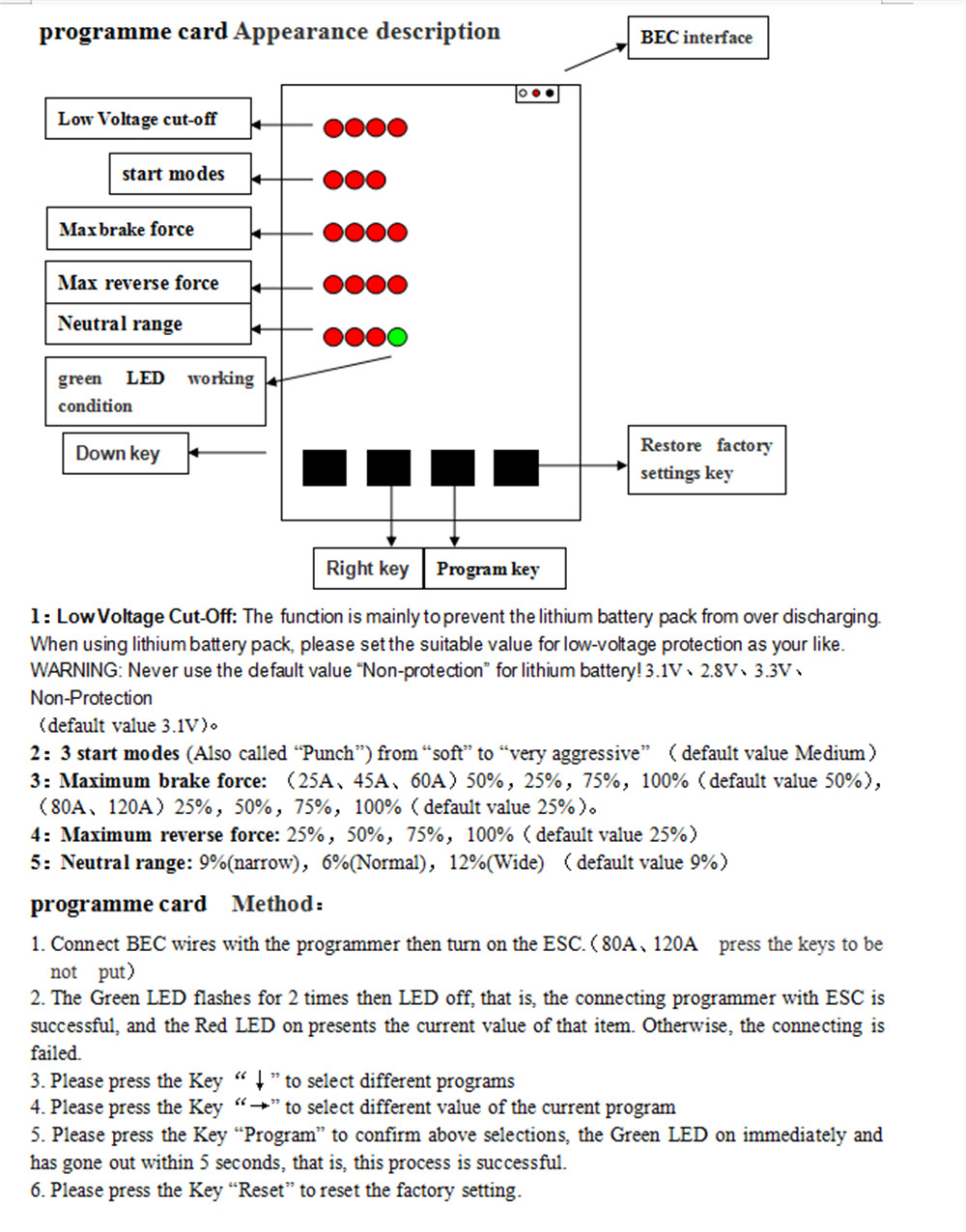 Surpass Hobby F540 harjaton moottori ja 60A nopeussäädin LED-ohjelmakortilla kauko-ohjattaviin 1/12–1/14 tela-autoihin