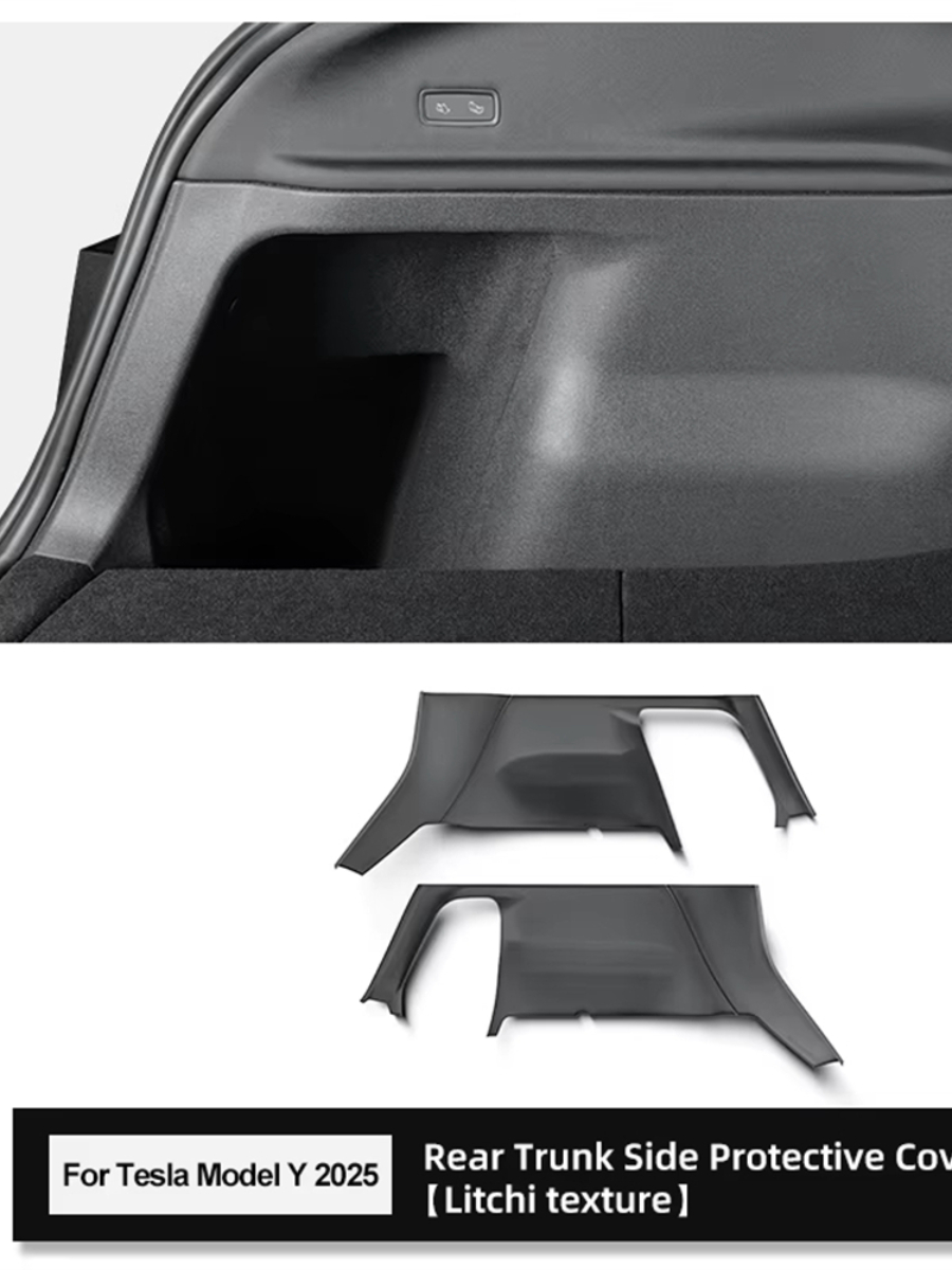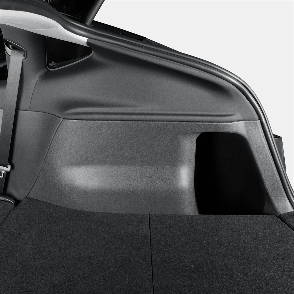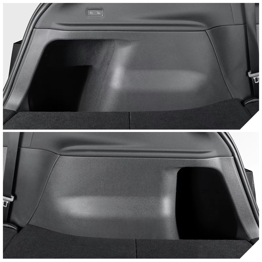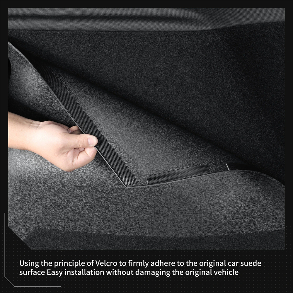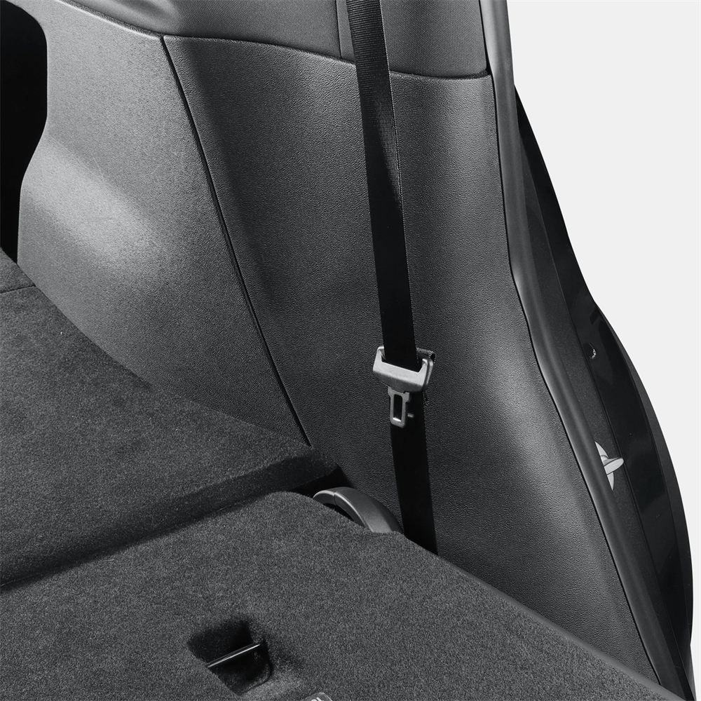 Takakontin sivujen suojapaneelit tarjoavat siistin, alkuperäisen verhoilun näköisen ratkaisun, joka suojaa Tesla Model Y 2025 -mallin takatilan sivuja naarmuilta, lialta ja kulumiselta.