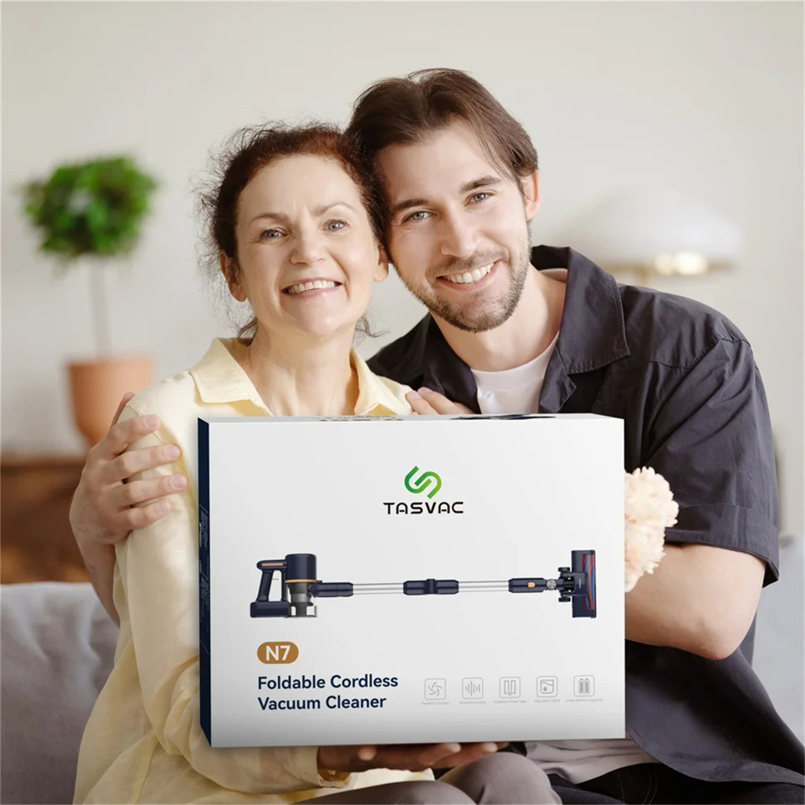 TASVAC N7 on kevyt ja pussiton langaton pölynimuri kotiin. Tehokas imuteho, 180° taipuisa putki, moottoroitu lattiasuulake LED-valoilla sekä 5-vaiheinen suodatus auttavat pitämään kovat lattiat ja matalat matot, huonekalujen aluset sekä ahtaatkin kulmat puhtaana.