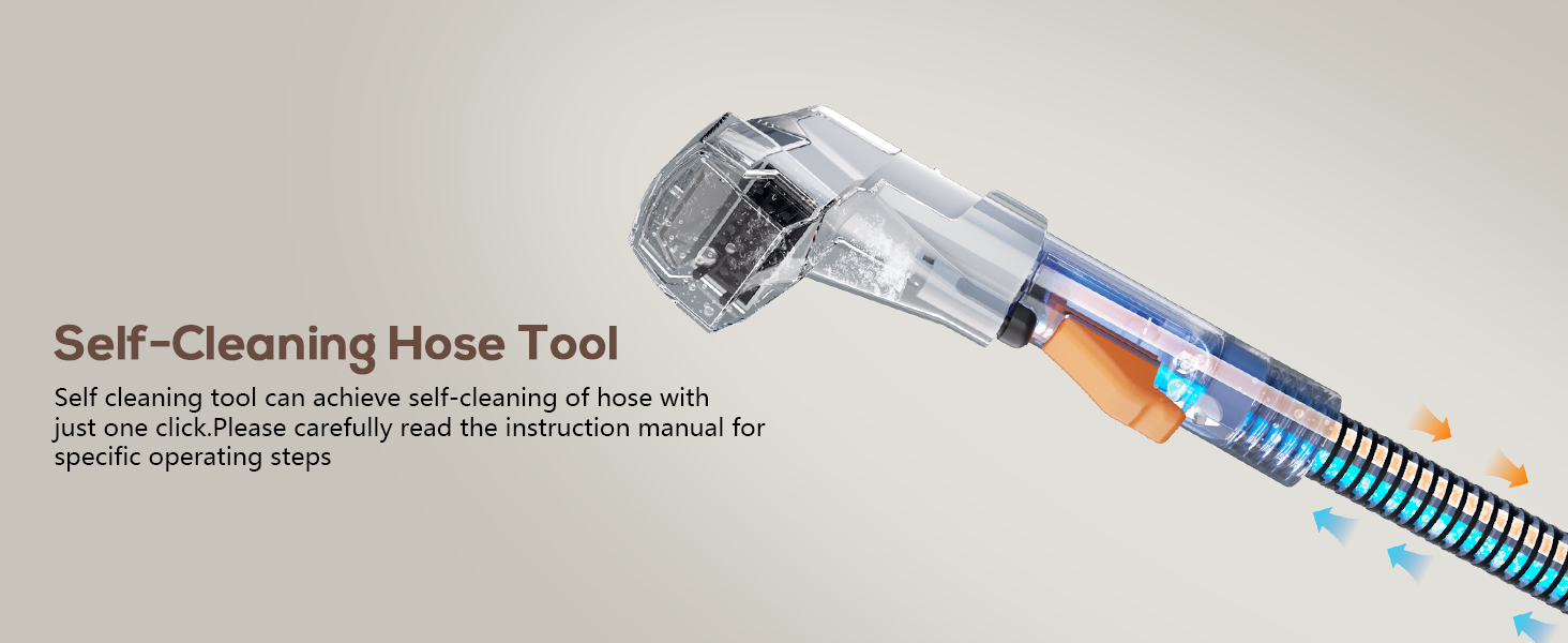 - Tehokas itsepuhdistuva letkutyökalu: Irrotettava itsepuhdistuva letkutyökalu helpottaa huoltoa ja pitää laitteen hyvässä kunnossa ilman käsinpuhdistuksen vaivaa.