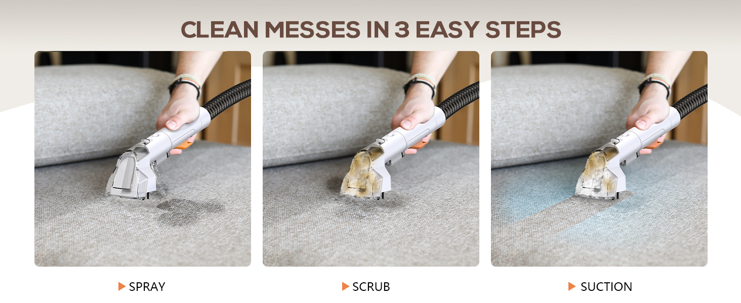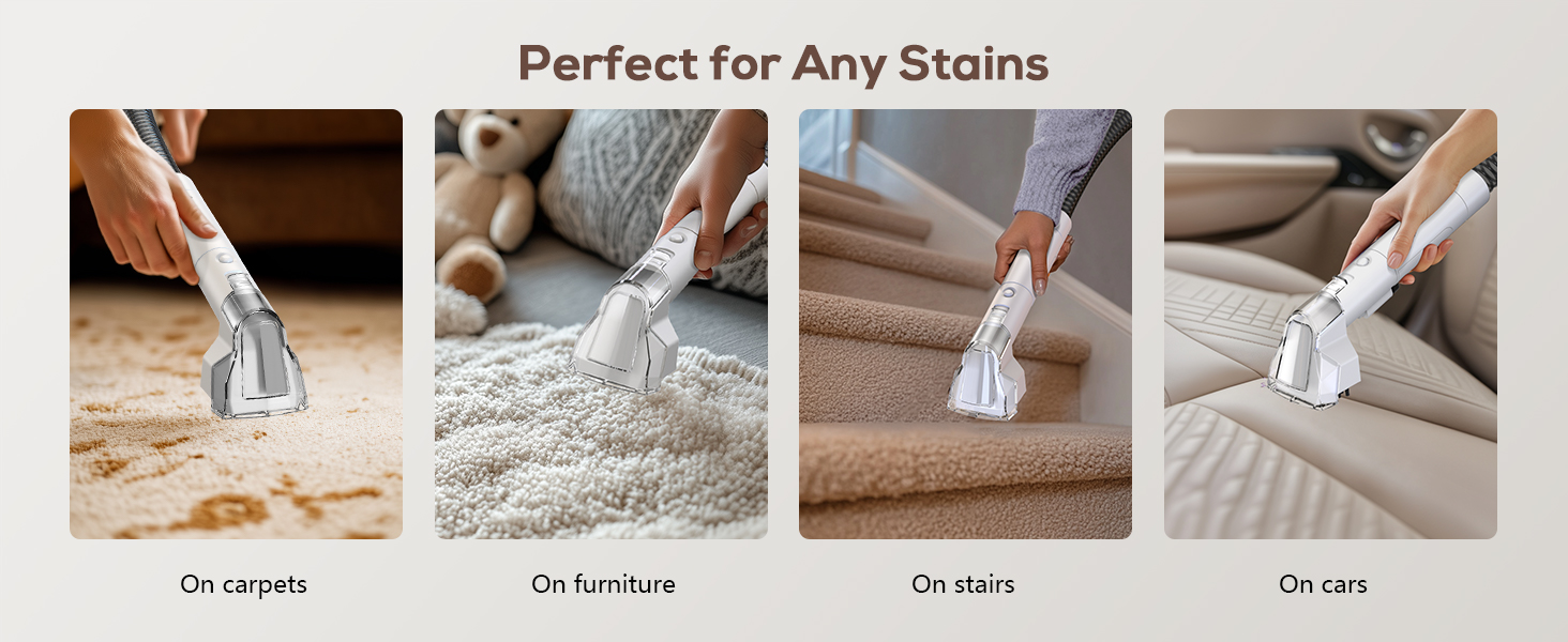 - Monikäyttöisyys: Sopii sohville, matoille, auton sisustoihin ja patjoille – mukautuu erilaisiin puhdistustarpeisiin.