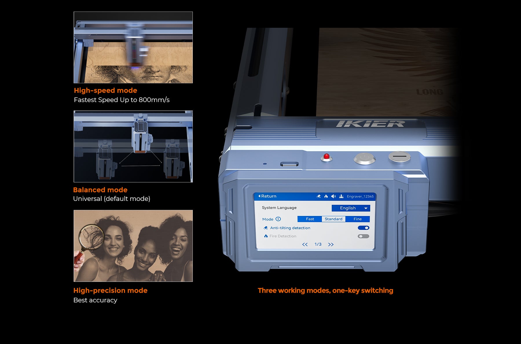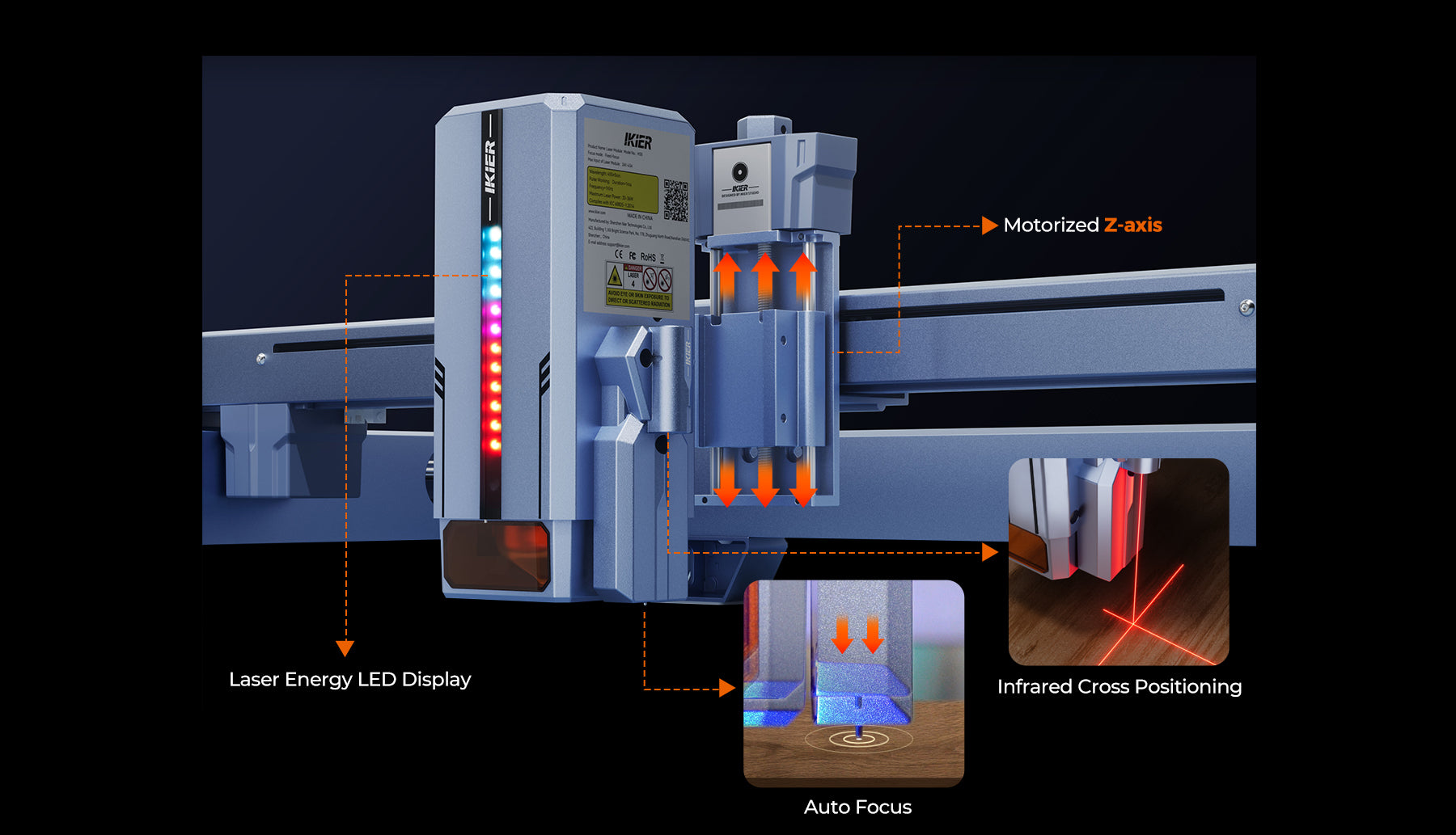 Tehokas iKier K1 Pro 24 watin laserkaiverruskone 4,3 tuuman kosketusnäytöllä moottoroitu Z-akseli