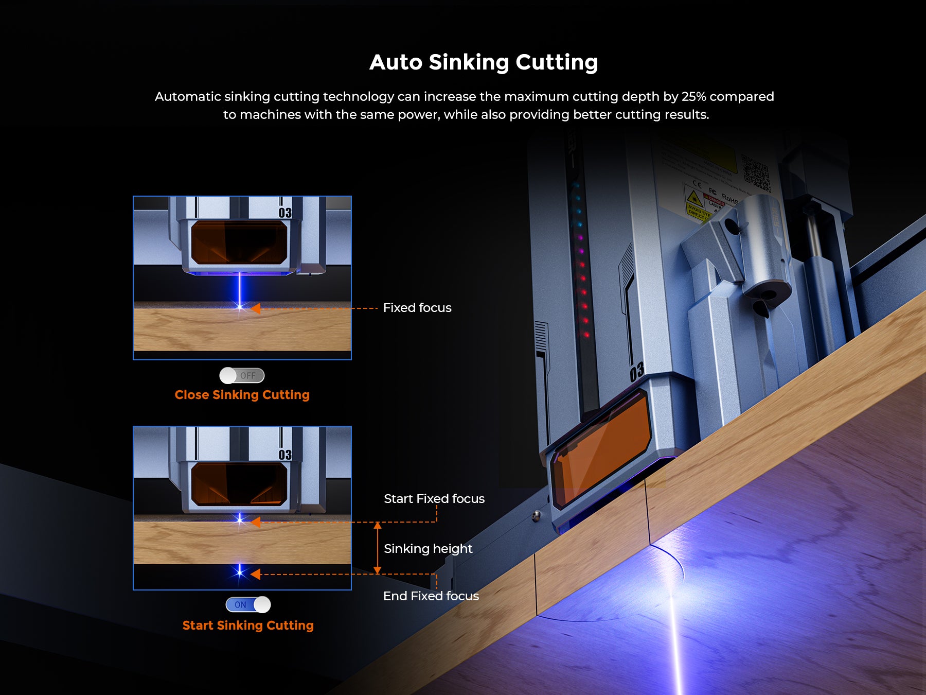 3. Automaattinen laskeutuminen leikkauksen aikana: kasvattaa suurinta leikkaussyvyyttä jopa 25 % samaan teholuokkaan verrattuna ja parantaa leikkausjälkeä.